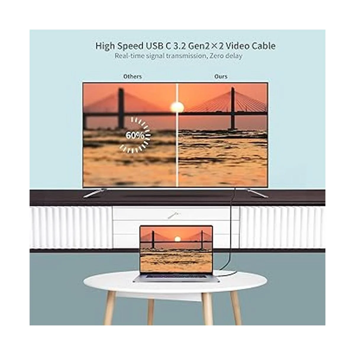 Salida de video y audio 4K a 60Hz compatible con Thunderbolt 3/4: cable USB tipo C a USB C 3.2 Gen 2 de 20 Gbps, cable de datos de 6 pies soporta transferencia de video 4K. Disfruta viendo videos en una resolución más nítida y nítida para conectar una pantalla/monitor USBC de hasta 4K x 2K a 60Hz. Nota: la función de video solo funciona para aquellos dispositivos cuyo puerto USB C soporta el modo DP Alt. Para iPad Pro 2018, este producto no puede soportar salida de video.