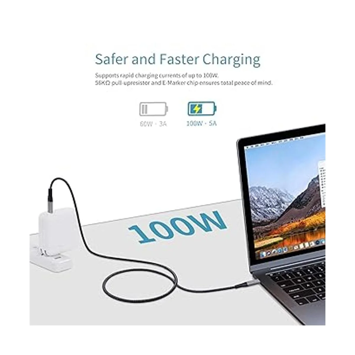 Seguridad EMark de carga rápida de 100 W Soporta 5 amperios de corriente de 100 vatios máximo, es adecuado para extender cables predeterminados que vienen con tus dispositivos que generalmente son de longitud corta. Carga tu MacBook/laptop/iPad a toda velocidad mientras que la extensión adicional te permite moverte libremente. También funciona con teléfonos tipo C, como Galaxy S22 Ultra/S21/S20/Note 20/Note 10, Pixel 5/4XL/3A y cargador inalámbrico. Perfecto para conectar la consola Switch con la base de interruptor, por lo que la pantalla no se rayará.
