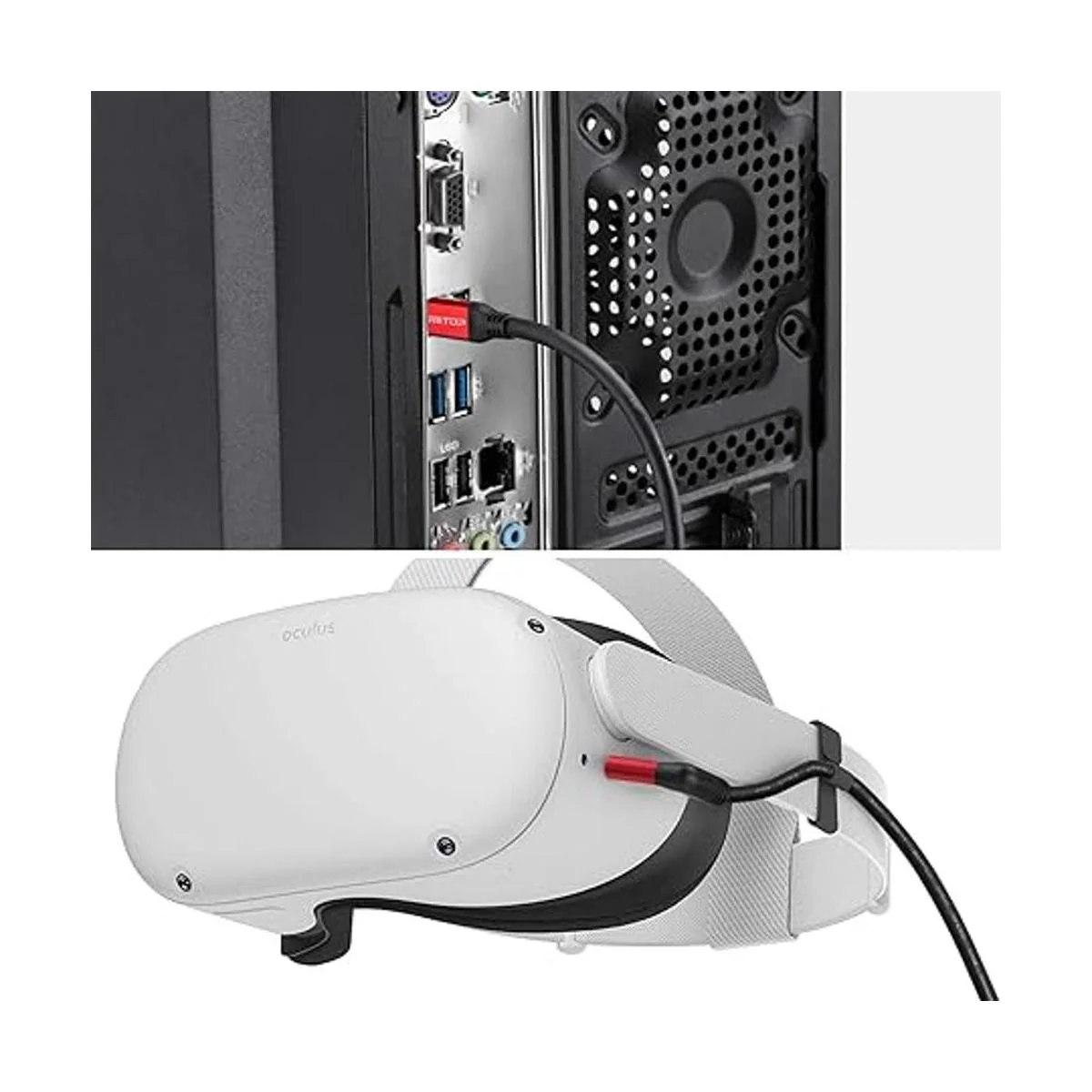 Diseño especial para Oculus Quest: conector de ángulo recto, cable mágico con cable de 10 núcleos, más flexible, duradero y ligero, adecuado para conectar auriculares Oculus Quest para reproducir PC VR, lo suficientemente largo como para proporcionar más libertad de movimiento. Oculus Home realmente prueba velocidad de hasta 1.5 1.6 Gbps, la potencia aumentó un 5 después de jugar durante 1 hora.