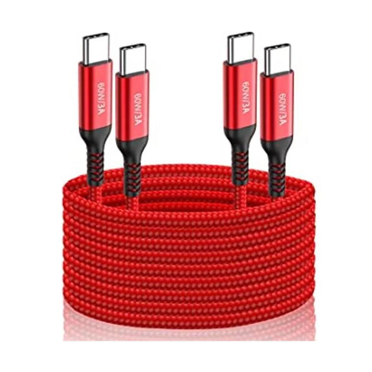 Cable USB C a USB C de 10 pies de largo, 2 unidades, cable de cargador rápido tipo C de 60 W para Samsung Galaxy S22 S21 S20, Note 20 Ultra, MacBook Pro, iPad Air 5, iPad Mini 6, Google Pixel 654a, OnePlus 9, Sony PS5, Dell Laptop Rojo