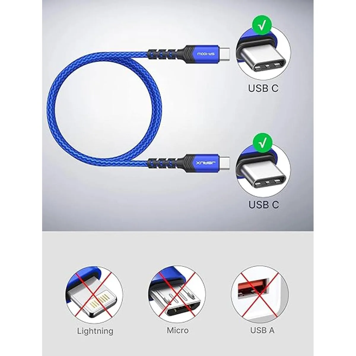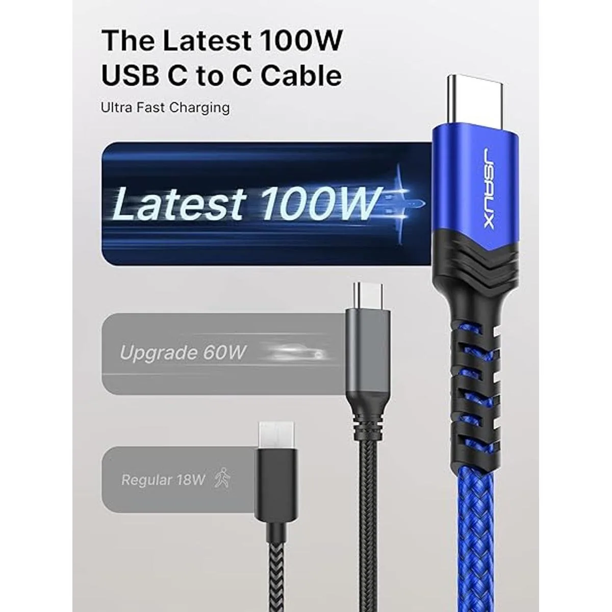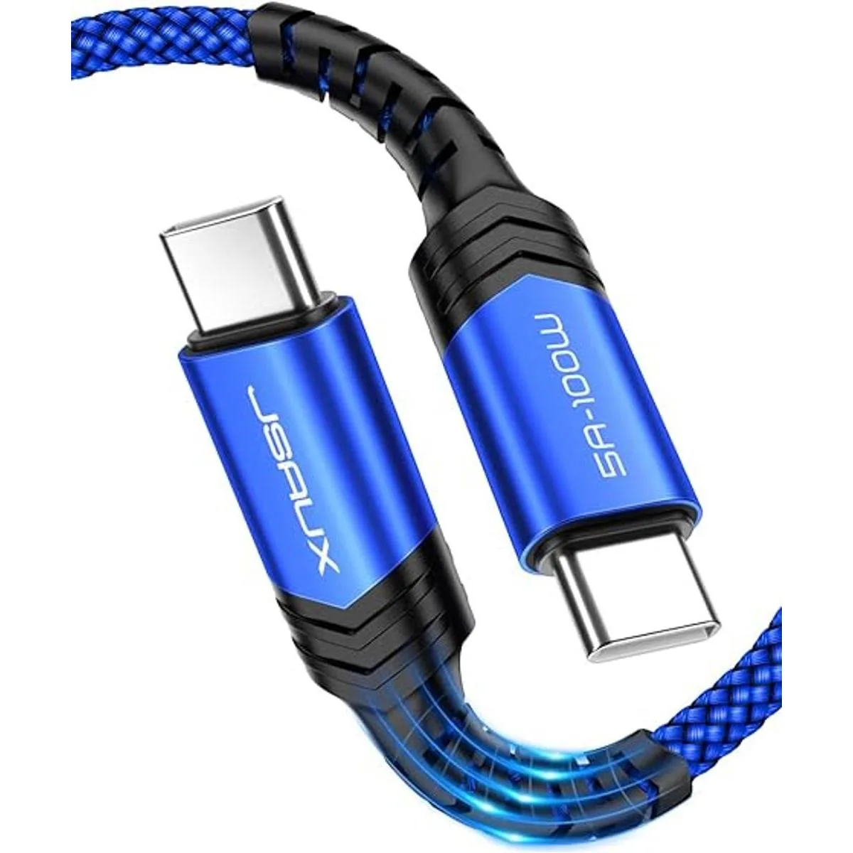 Cable USB C a USB C de 100 W y 10 pies, JSAUX 5A PD USB tipo C cable de carga rápida compatible con MacBook Pro 202120202019, MacBook Air, iPad ProAirMini, Dell XPS 1513, Galaxy SNote, PixelAzul