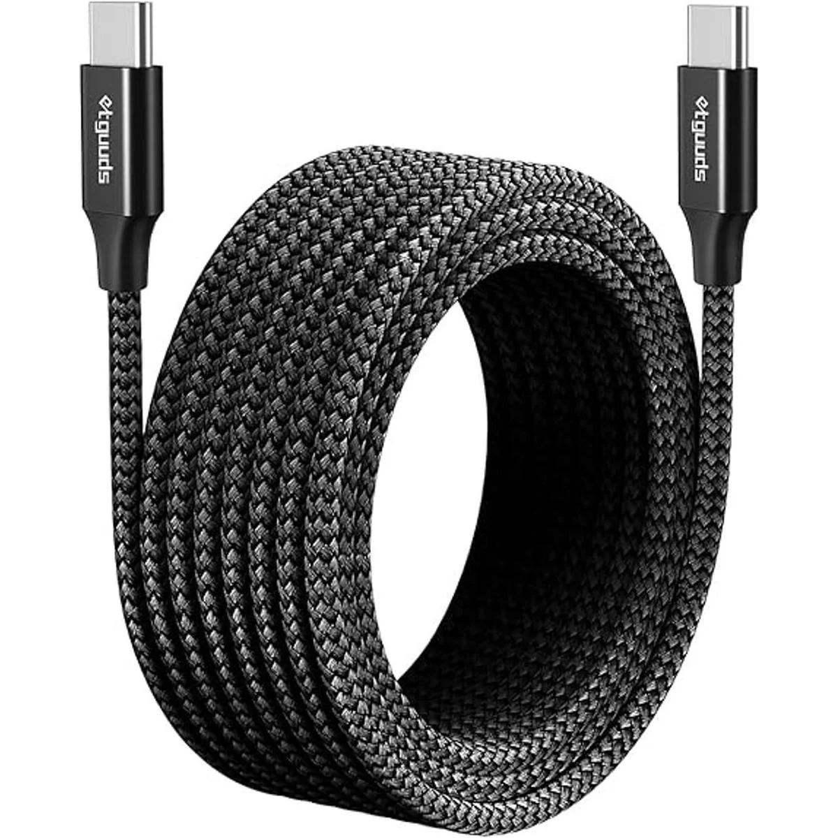Cable USB C a USB C de 30 pies29.5 ft, cable USB C a USB C, cable de alimentación de nailon trenzado USB tipo C a tipo C 2.0 PD Negro