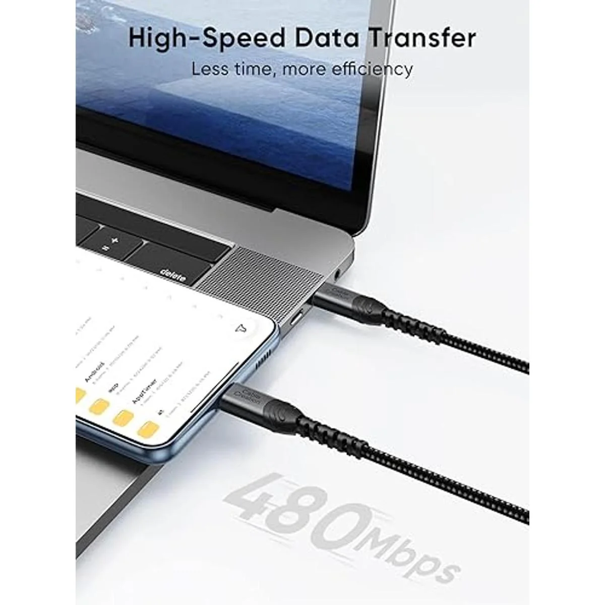 Carga de alta velocidad de 60 W y sincronización de datos: el cable de carga USB CableCreation soporta carga rápida de hasta 3 A y velocidades de transferencia de datos de hasta 480 Mbps 4060 MB/s. Nota: este cable no te proporcionará una carga rápida solo, necesitarás un bloque de energía nominal para una carga rápida y un teléfono capaz de lo mismo.
