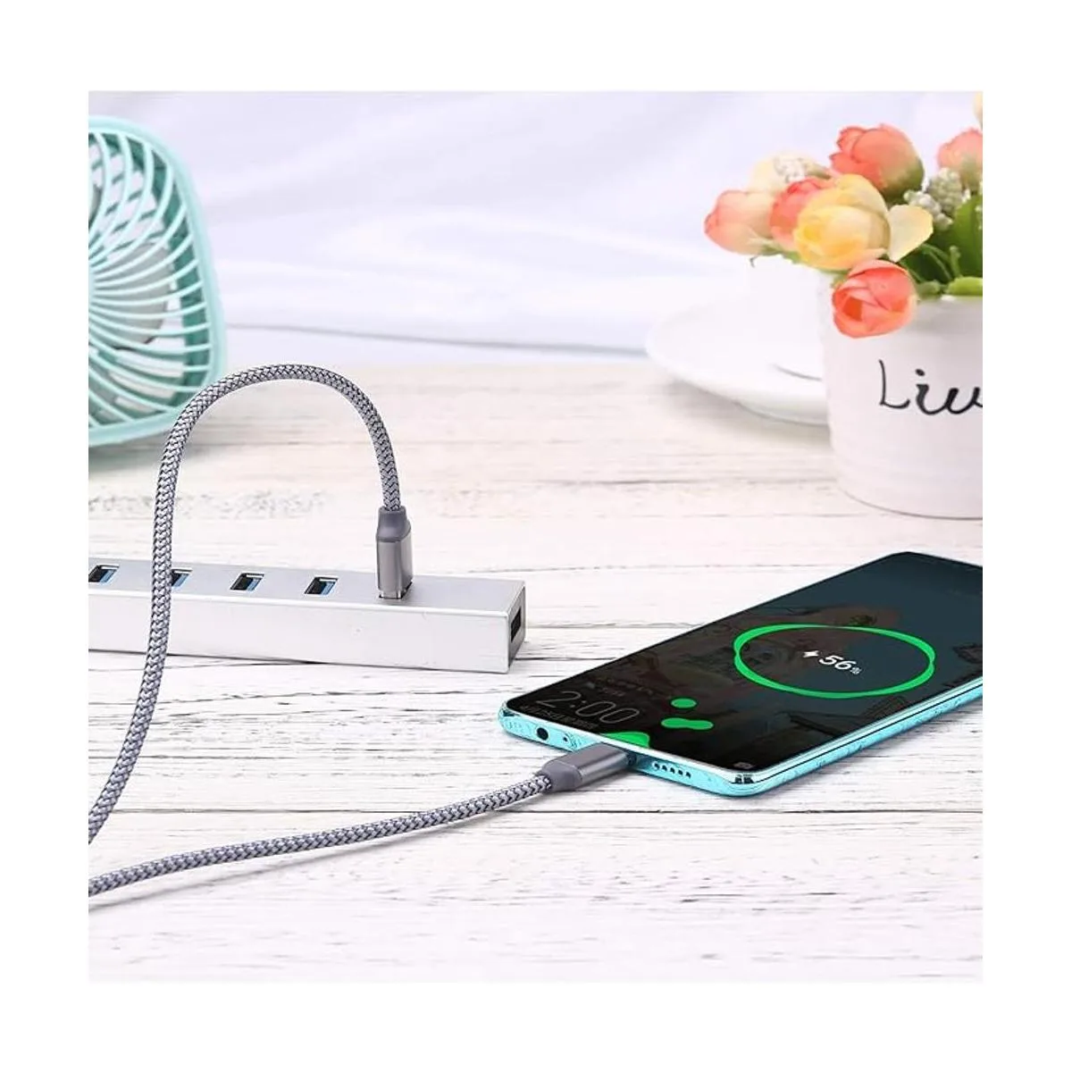 Cable USB C corto 0.8 pies paquete de 3, cable de carga rápida trenzado USB A a tipo C, compatible con Samsung Galaxy Note 9 8, S10 S9 S8 Plus, A10 A20 A51, LG V35 G7, cargador portátil gris