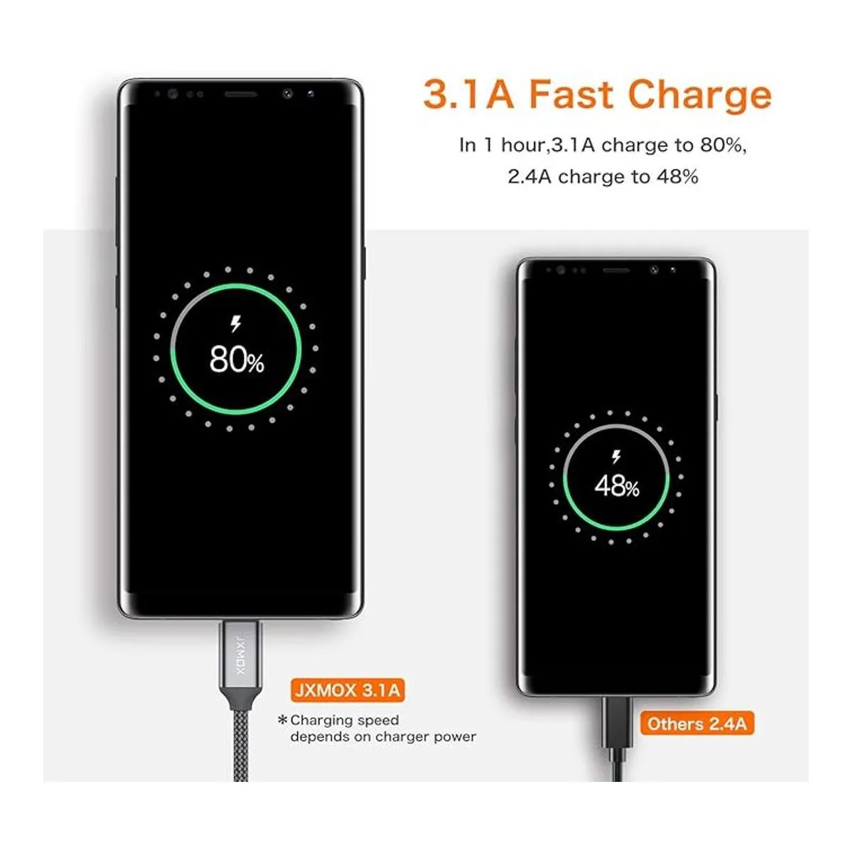 Carga rápida y sincronización de datos: soporta carga segura de alta velocidad de 3.1 A y velocidad de sincronización de datos de hasta 480 Mb/s. La resistencia de 56 k proporciona una conductividad y estabilidad excepcionalmente fiables y protege tus dispositivos y adaptadores de carga de daños.