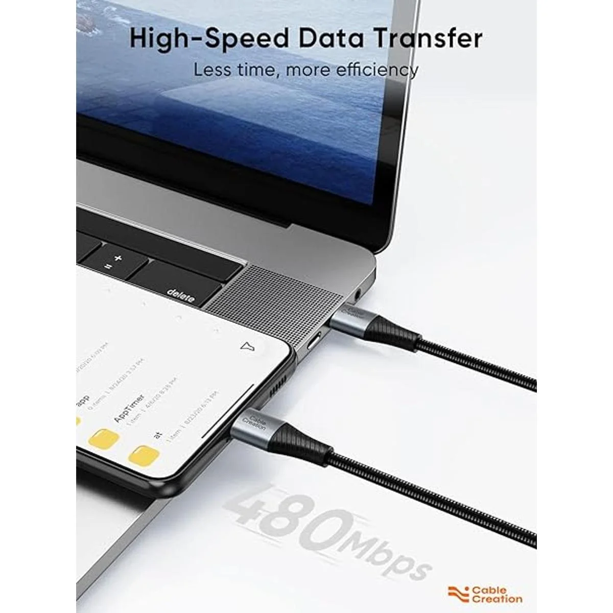 Carga de alta velocidad de 60 W y sincronización de datos: el cable de carga USB CableCreation soporta carga rápida de hasta 3 A y velocidades de transferencia de datos de hasta 480 Mbps 4060 MB/s. Nota: este cable no te proporcionará una carga rápida solo, necesitarás un bloque de energía nominal para una carga rápida y tu teléfono debe soportar carga rápida al mismo tiempo.