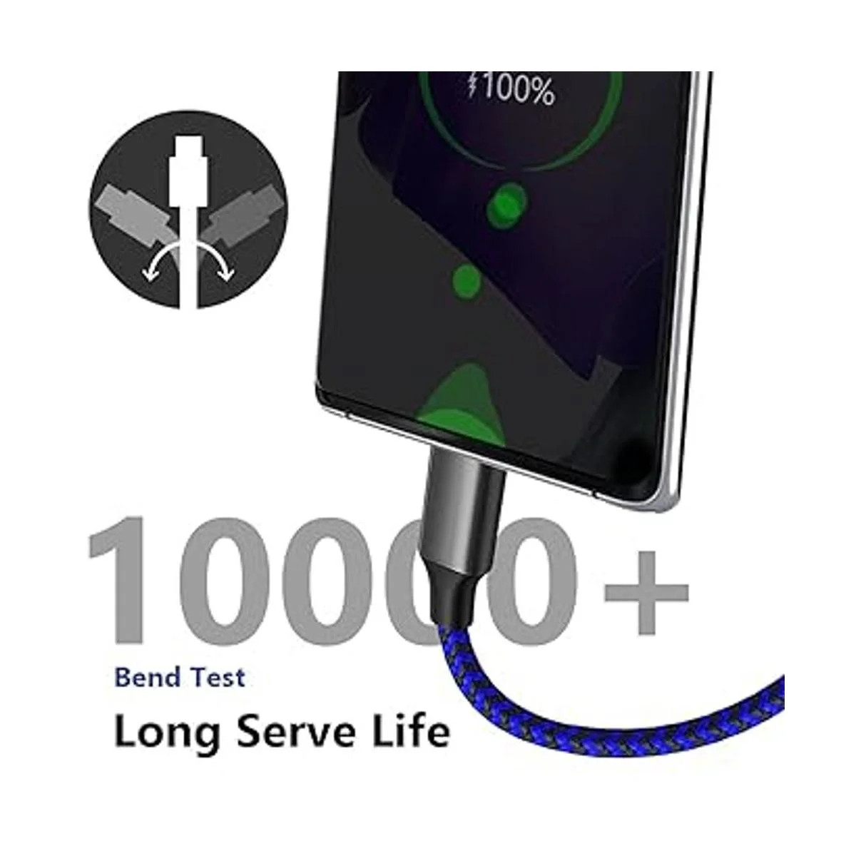 Extra largo: el cable USB C extra largo de 10 pies utiliza material de nailon para proteger el cable y evitar nudos. Con la longitud de 10 pies, puedes cargar tu teléfono desde una larga distancia cuando te acuestas en el sofá o la cama, te sientas en el asiento trasero del coche, en cualquier lugar del uso diario.
