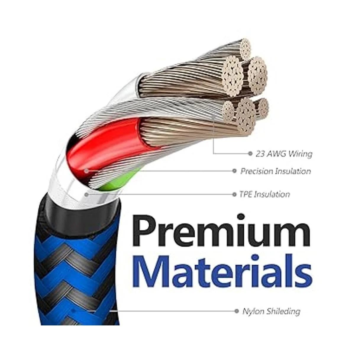 Cable USB C duradero y sin enredos: fibra fuerte, el material más flexible, potente y duradero, hace que la fuerza de tracción aumente en un 200. Puede soportar más de 10000 pruebas de flexión. La carcasa de aluminio de alta calidad hace que el cable sea más duradero, el cable USB tipo C largo trenzado de nailon añade durabilidad adicional y libre de enredos.