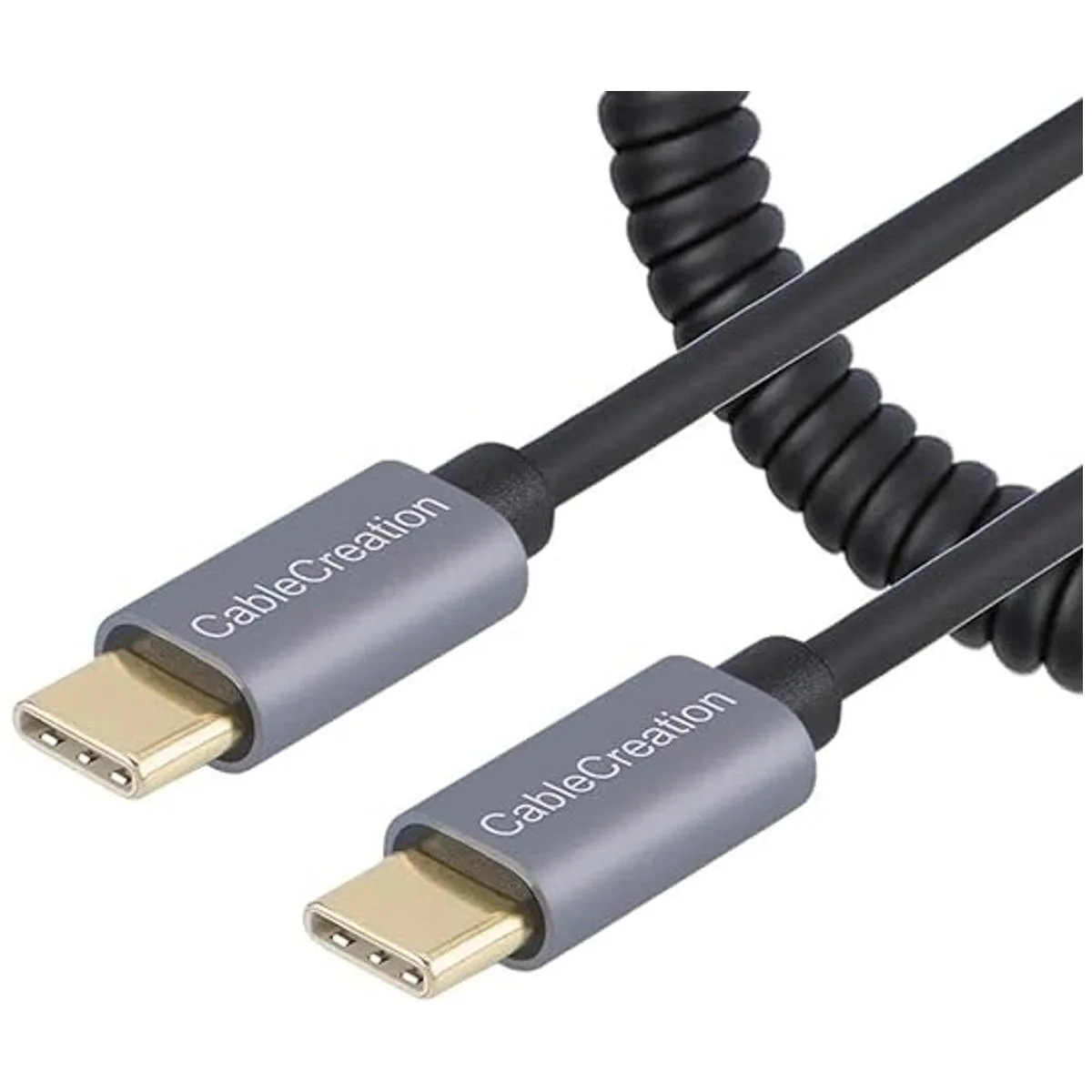 Cable USB C en espiral de 5 pies, cable USB C CableCreation de carga rápida USB C a USB C con carcasa de aluminio de alta calidad estirada de 1.5 a 5 pies para MacBook Pro Air, Galaxy S21 S20 S10, etc