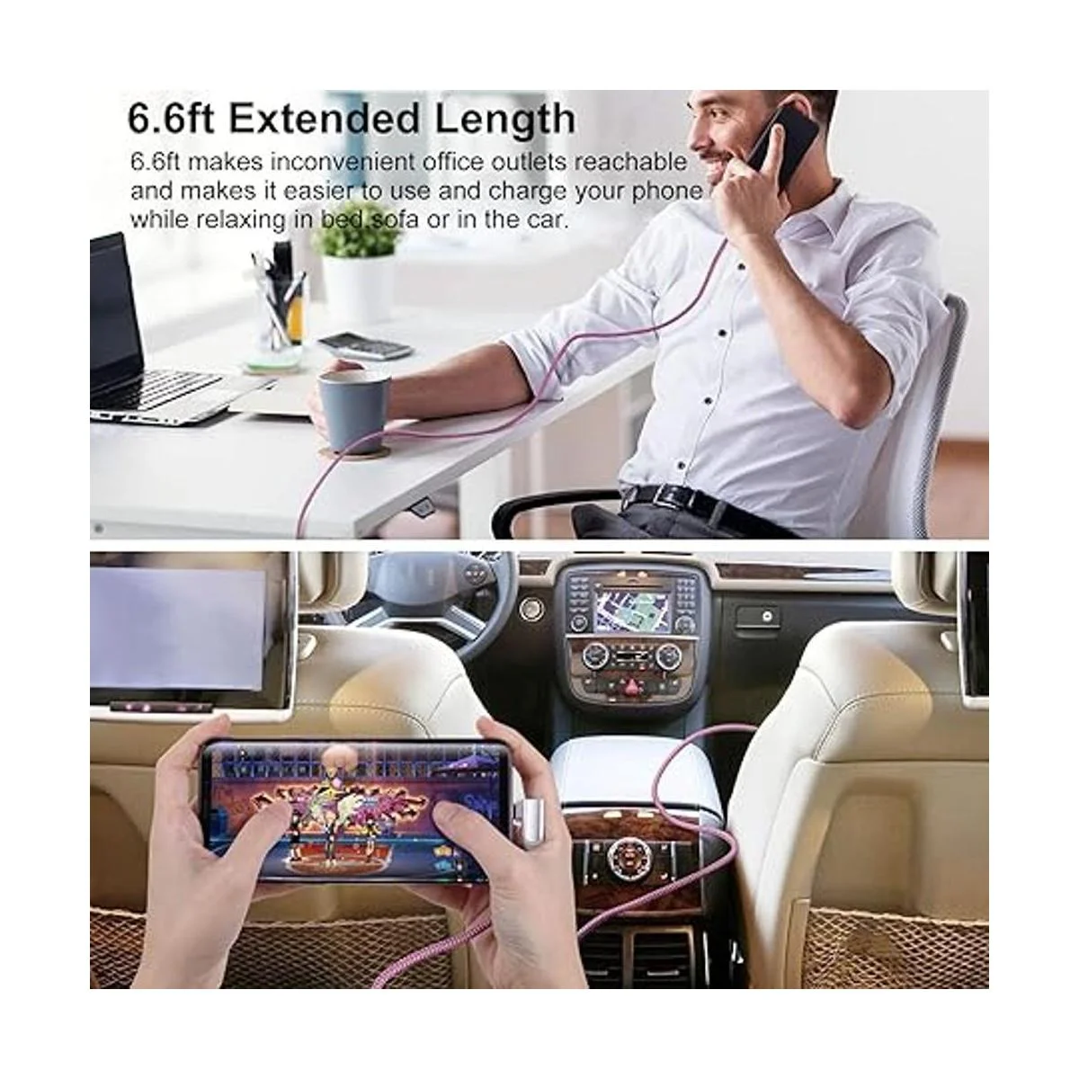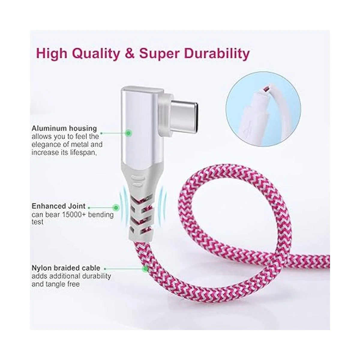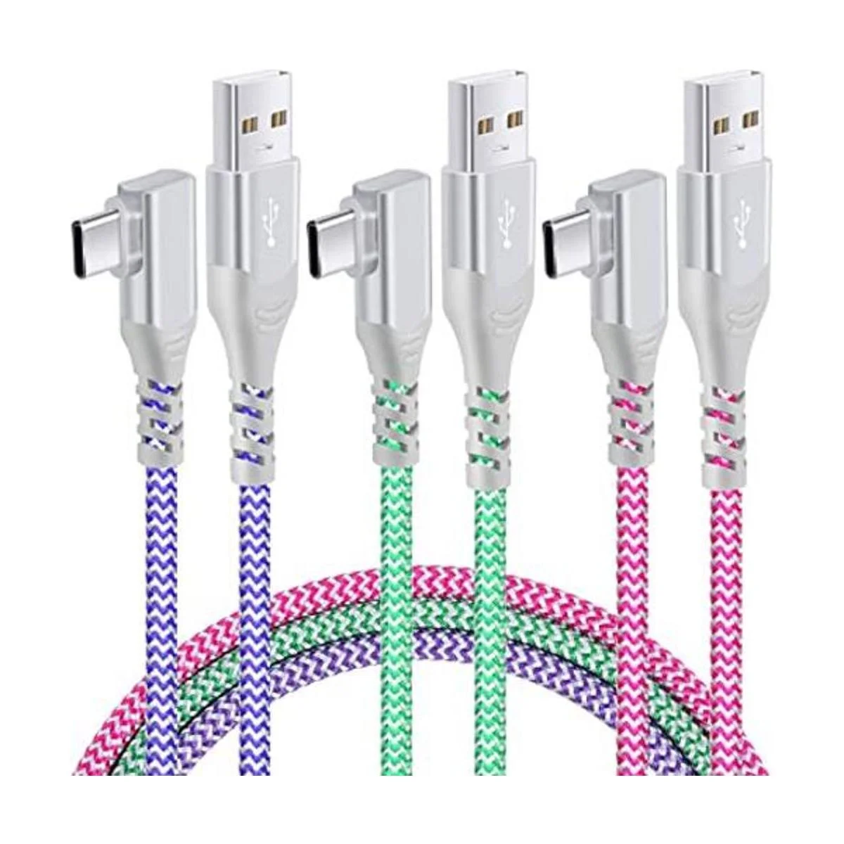 Cable USB C, Pofesun 3 unidades, 6.6 pies 3.1 A tipo C cargador de carga rápida, ángulo recto, cable de carga USB C trenzado compatible con Samsung Galaxy S21 S10 Plus Note 10 9, LG G8 V40, Motopúrpura, verde, rosa