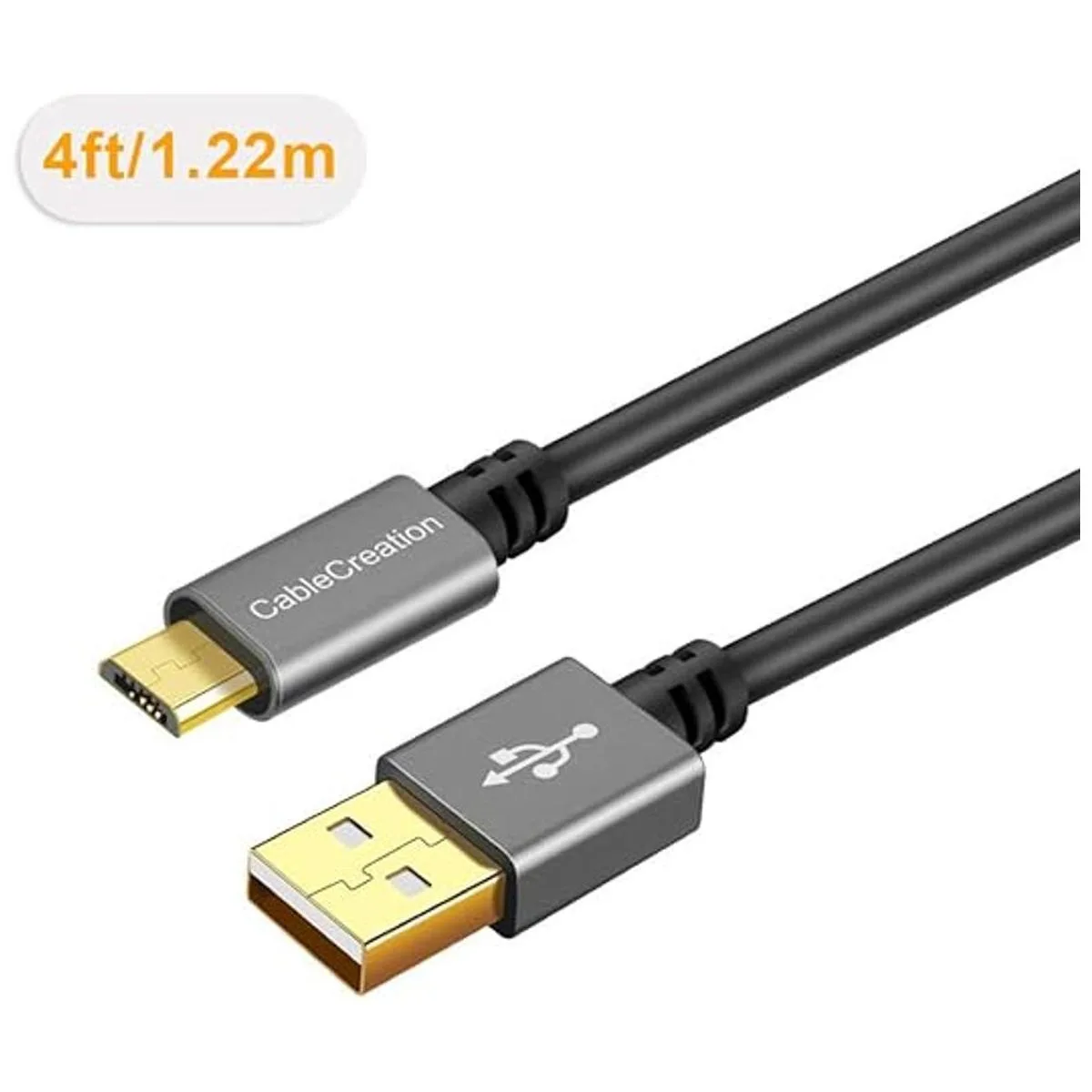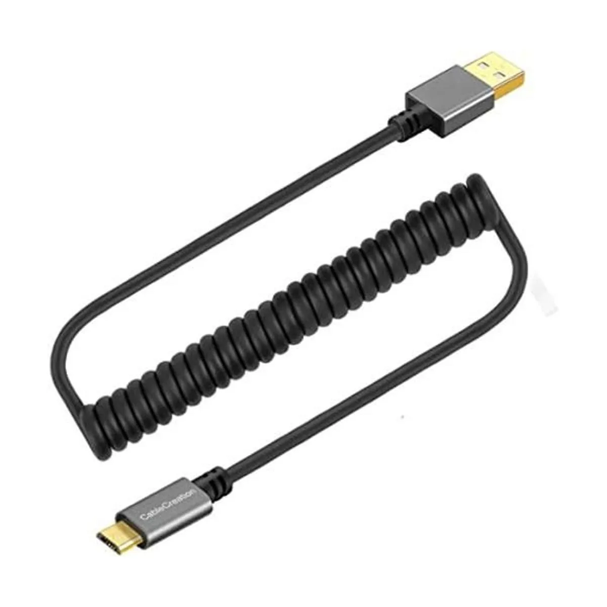 Cable USB en espiral, CableCreation 0.56 pies a 4 pies USB 2.0 A a Micro USB Cable de datos de carga, compatible con teléfonos inteligentes Android, cargador de pared y automóvil, gris espacial