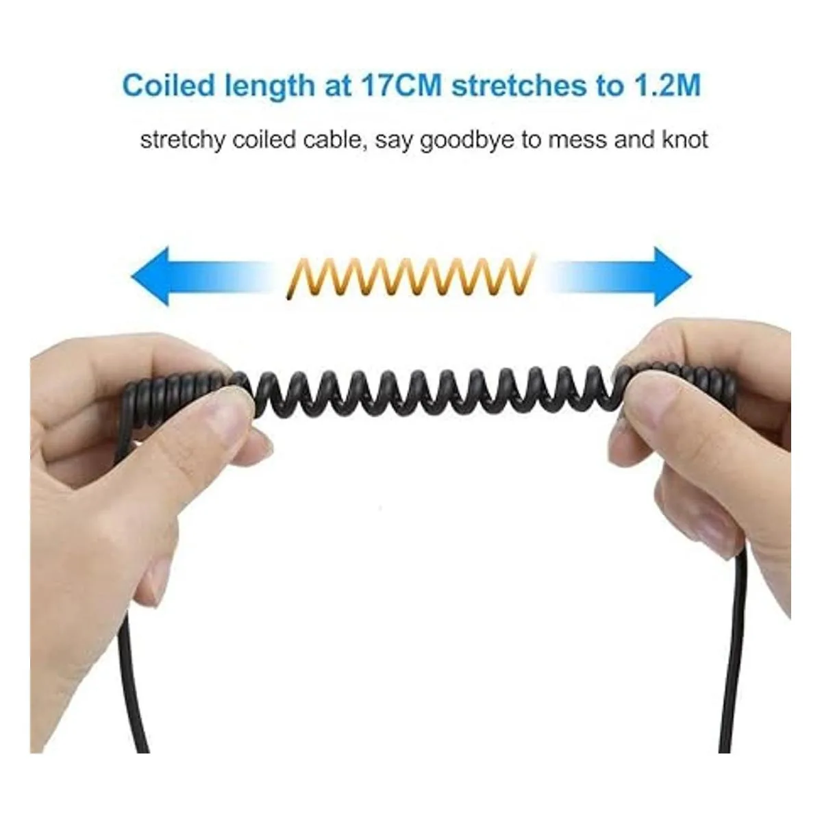 Longitud en espiral de 6.7 in, se estira hasta un máximo de 4.9 ft. La chaqueta de TPU añade elasticidad adicional y tacto suave.