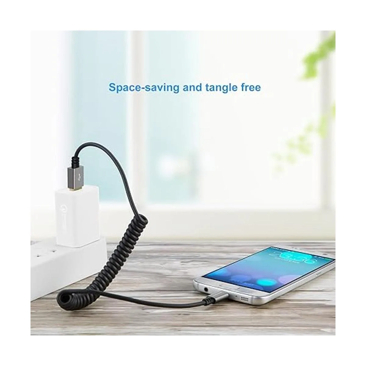 El cable USB a micro USB en espiral es fácil de almacenar y fácil de llevar, mantiene esos molestos nudos y enredos a raya. Proporciona comodidad para conectar a un cargador de coche. El cuerpo pequeño elimina el desorden innecesario.