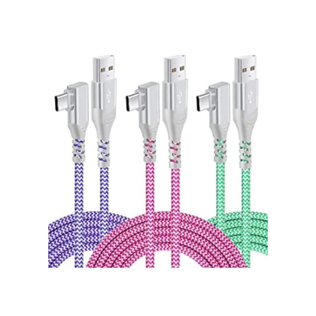 Cable USB tipo C de carga rápida paquete de 3, 10 pies Pofesun cable USB C en ángulo recto USB A a tipo C de 90 grados compatible con Samsung S22Ultra S21 S20 S10 S9 Plus Note 20 10 morado, verde, rosa