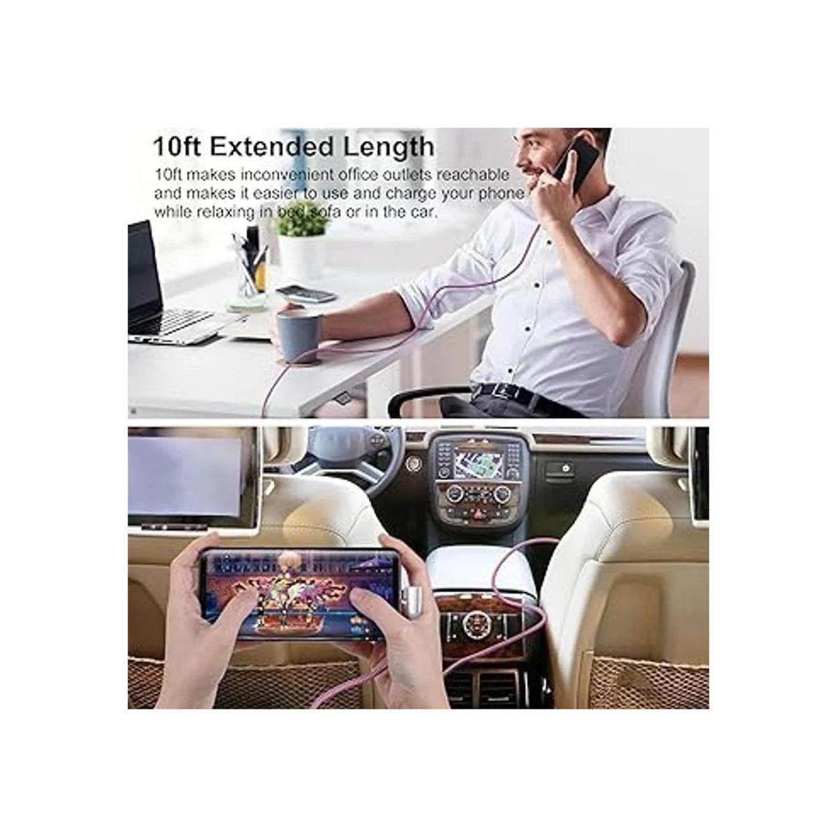 Longitud extra larga de 10 pies y kit de 3 colores diferentes Tu compra incluye 3 cables de 10 pies de largo, la longitud perfecta permite cargar tus dispositivos mientras estás sentado en el sofá, tumbado en la cama, trabajas en tu oficina y conectas a un soporte para coche. 3 cables en diferentes colores brillantes, lo que los hace fáciles de encontrar, también puedes compartir con las familias para que todos tengan su propio color.