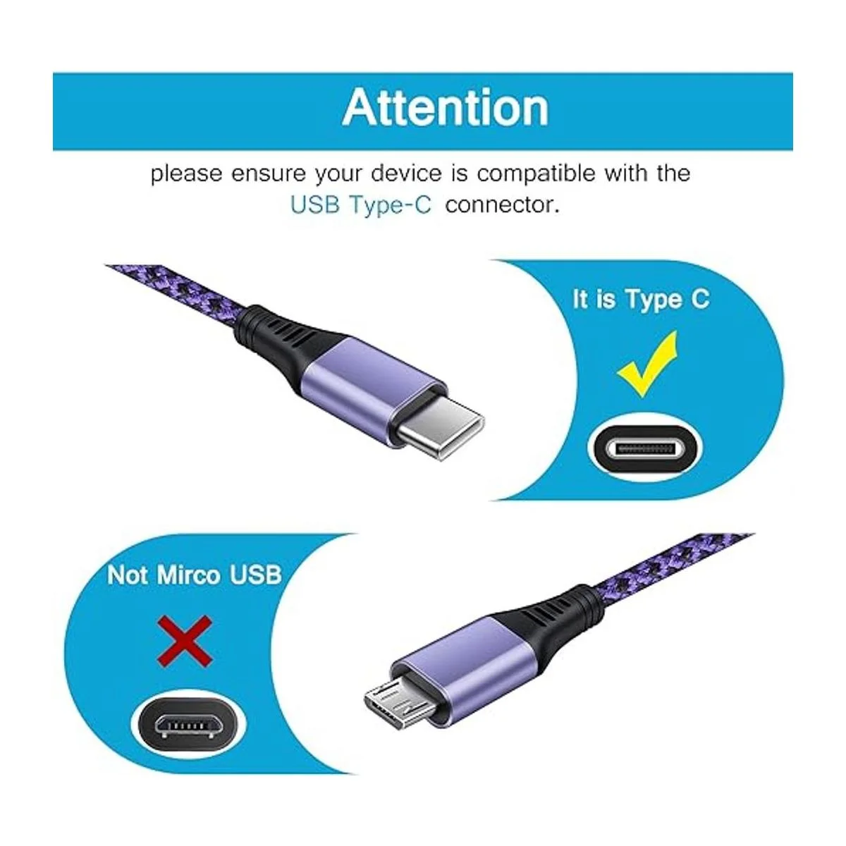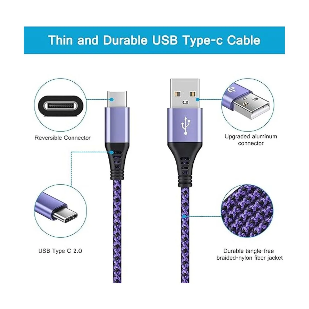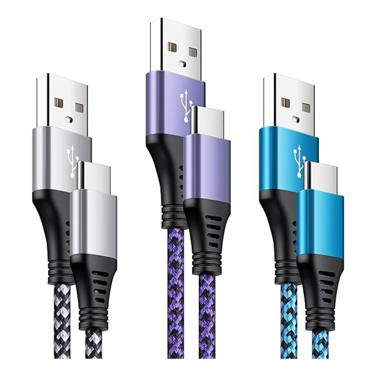 Paquete de 3 cables de carga rápida Paquete de 3 coloridos USB C a un cable de carga rápida que puede corregir tus necesidades de carga. Puedes compartir la felicidad y la comodidad para tu familia y amigos. Proporciona un uso a largo plazo. Puedes mantener un cable en tu hogar u oficina como respaldo. Es un buen regalo para tu pareja en el día de Navidad.