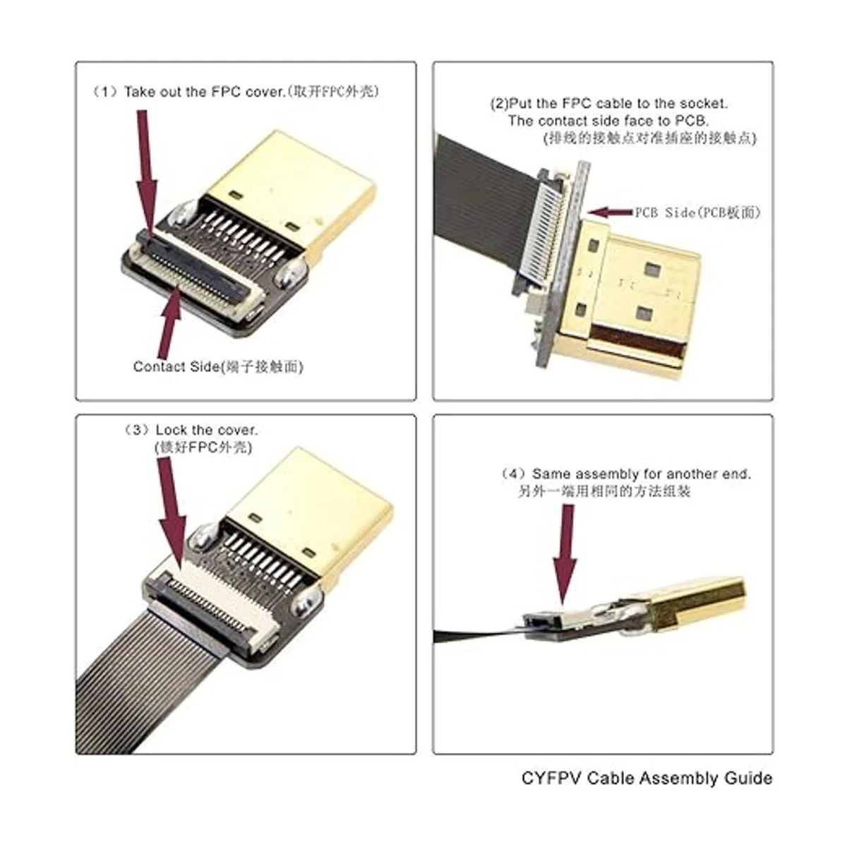Cablecc CYFPV FPV HDMI macho a ángulo superior 90D HDMI macho HDTV FPC cable plano para FPV HDTV Multicopter Aerial Photography, 50cm