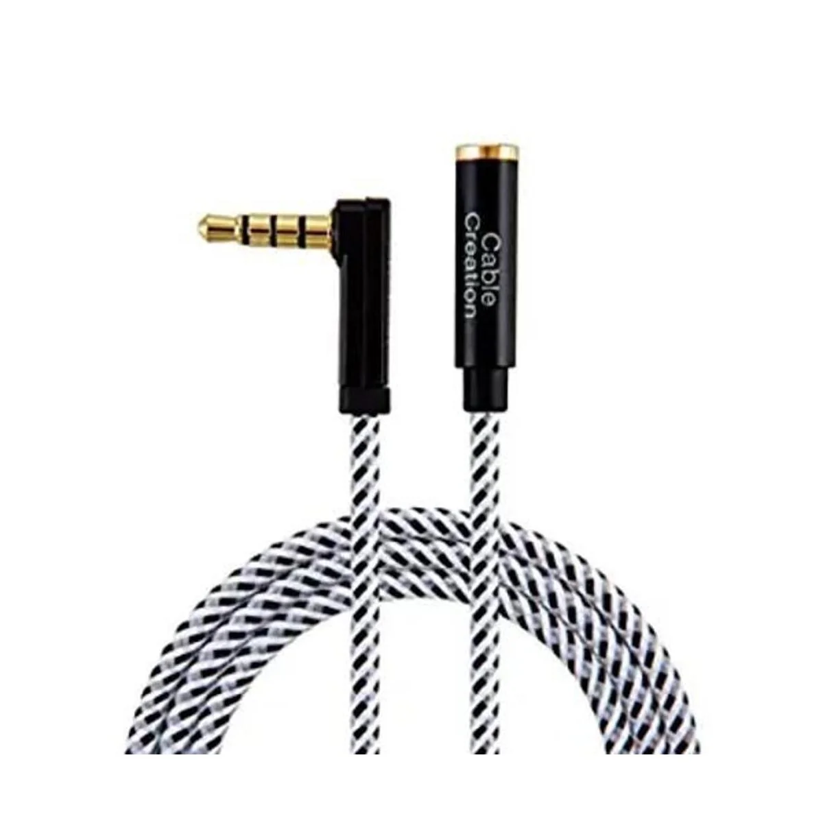 Cablecreation 1.5 pies auxiliares TRRS de 14100 pulgadas cable de audio macho a hembra Cable de audio estéreo Adaptador, ángulo derecho de 90 grados 4Conductor Micrófono Compatible, Rose Gold, BlancoNegro