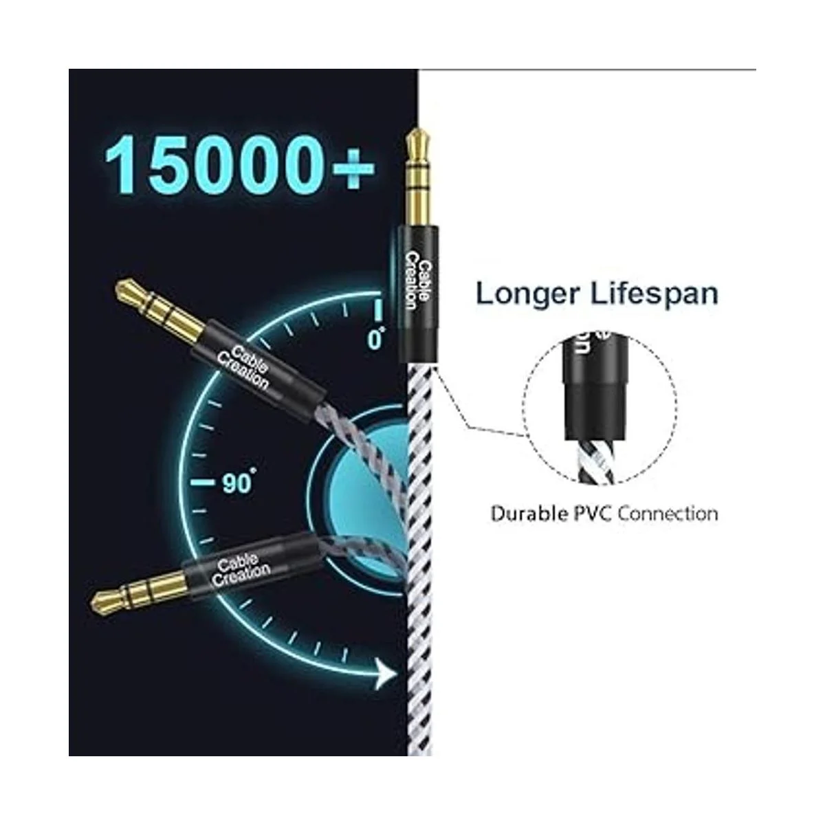 Diseño delgado y flexible cable de audio estéreo de 3,5 mm, conecte su dispositivo de audio portátil, iPhone, iPod, reproductor de MP3, iPod, smartphone, tablet, etc., a su coche, altavoz estéreo, PC, TV o cualquier otro audio que es compatible con auxiliar de 3,5 mm AUX