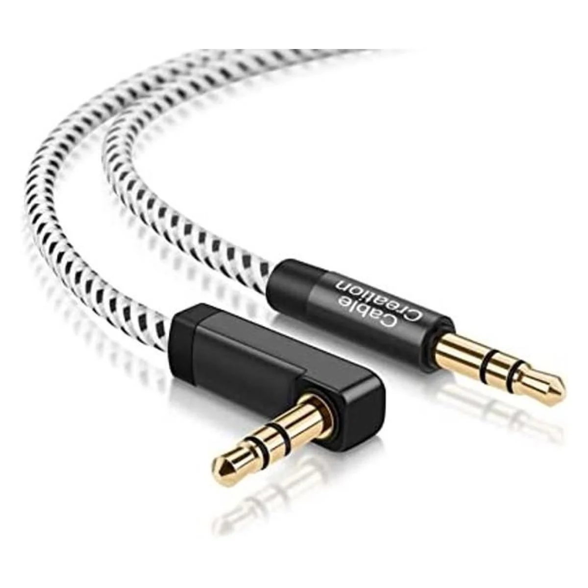CableCreation 1.5 pies Cable de audio auxiliar de 3.5 mm ngulo recto de 90 grados para Apple iPhone, iPod, iPad, Samsung, teléfonos inteligentes y tabletas y bocinas, oro 24K plateado, oro rosa, BlancoNegro