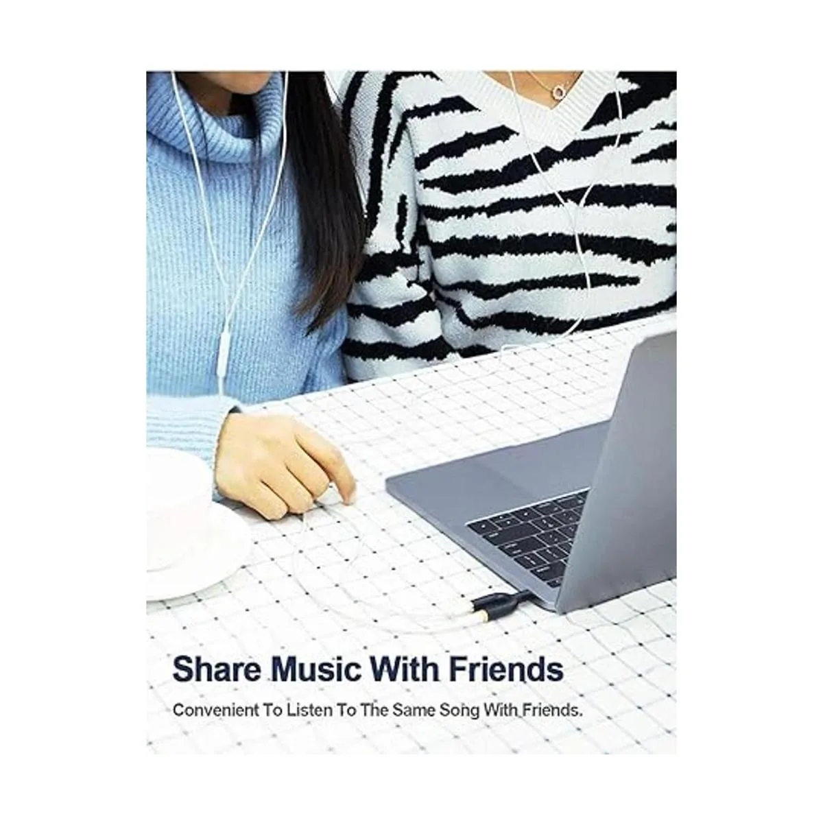Compartir audio con otros: adaptador divisor de 1/8 perfecto para compartir un iPad, teléfono, tableta o portátil para escuchar música, ver películas con tu amante o amigos mientras viajas. Nota: Si usas auriculares TRRS 4 conductores con este adaptador divisor de audio, el audio funcionará pero el micrófono no. Tampoco funciona con el control de volumen en línea en los auriculares.