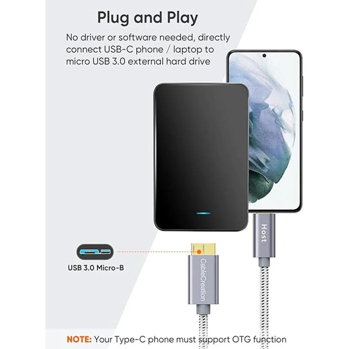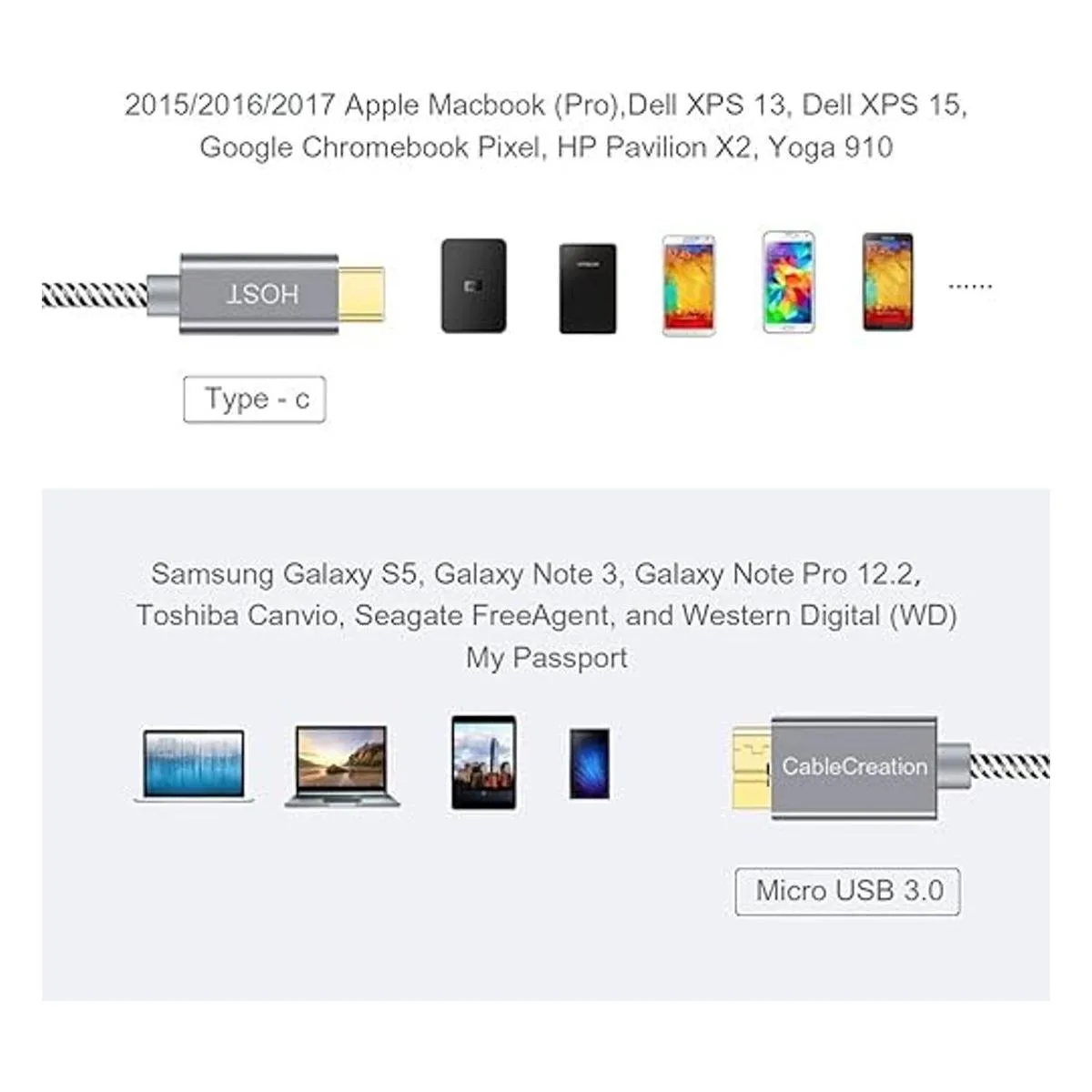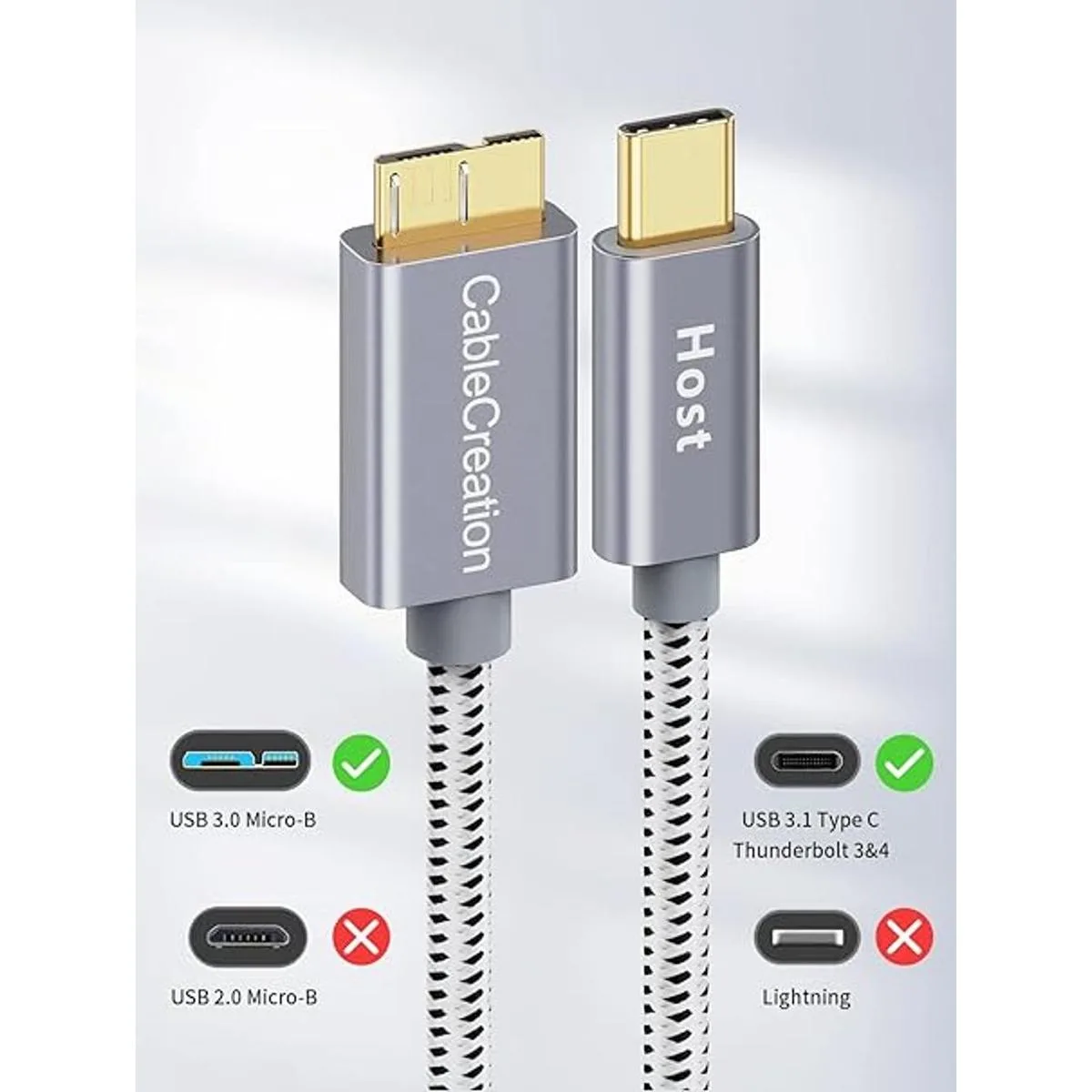 CableCreation Cable de disco duro USB C de 3.3 pies, cable USB 3.1 C a micro B, cable USB C a disco duro de 10 Gbps, compatible con MacBook Pro Air Galaxy S5 My Passport Elements, etc., 3.3 ft, gris espacial