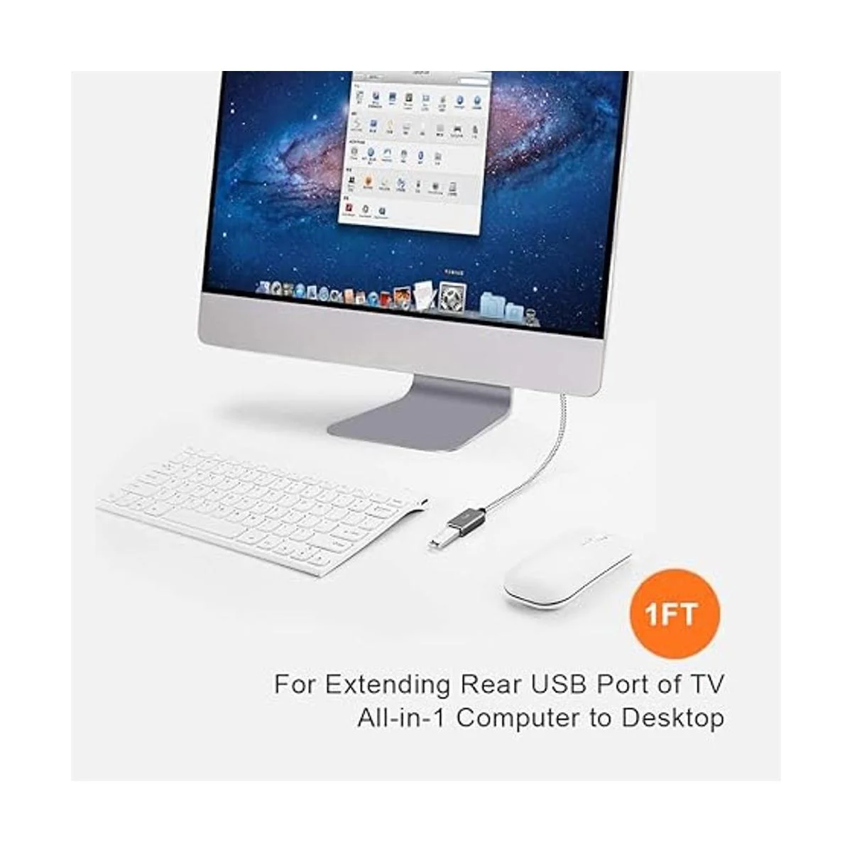 CableCreation Paquete de 2 cables de extensión USB 3.0 cortos de ángulo recto USB 3.0 macho a hembra, unidades flash compatibles, teclado, escáneres, aluminio gris espacial de 1 pie