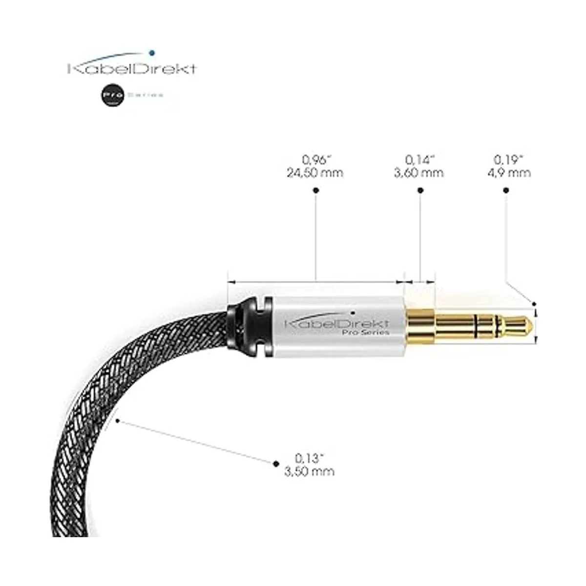 CableDirect Cable auxiliar, cable de audio de 4 pies corto 0.138 in, diseñado en Alemania cable de audio estéreo, cable auxiliar para cocheiPhoneportátil, trenzado de nailon sin enredos, Jack a Jack, negro