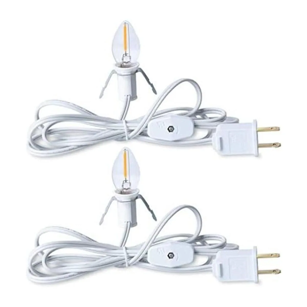 Cables blancos de 6 pies con una luz, cable de accesorio con certificación UL con interruptor de encendidoapagado enchufa a toma de corriente para decoraciones navideñas e iluminación de objetos pequeños paquete de 2 bombillas LED