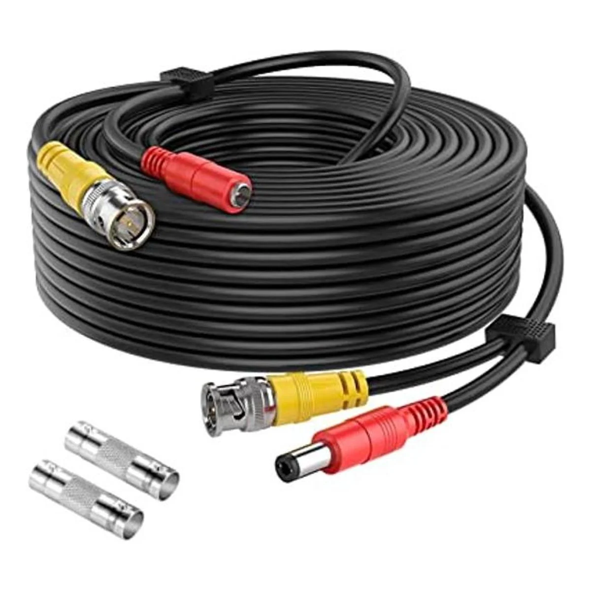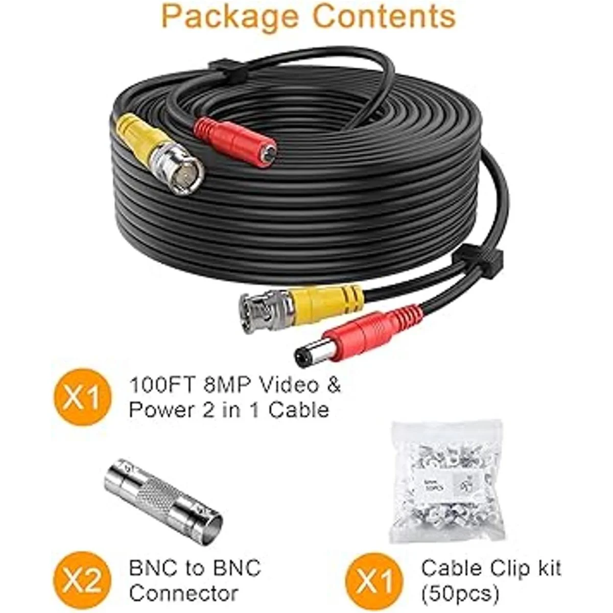 Fácil de usar; el cable de cámara tiene un cable unido multiusos prefabricado de 200 pies, incluyendo 2 conectores BNC hembra a BNC hembra y 1 kit de clip de cable 50 piezas, adecuado para interiores y exteriores, enchufe y uso