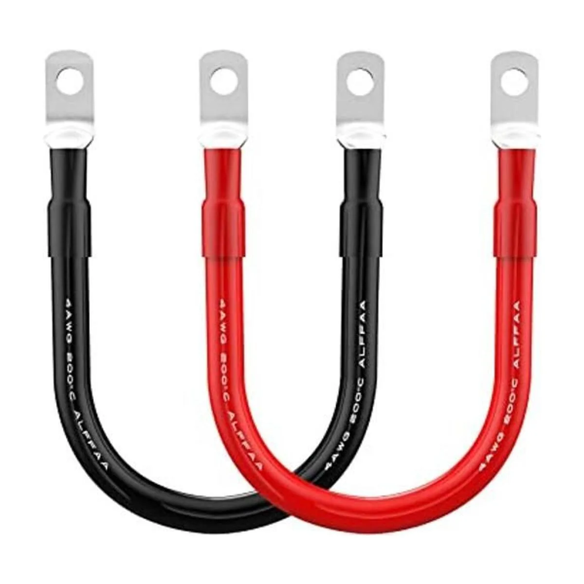 El paquete incluye: cable de batería inversor de batería de coche de 4 AWG de 1 pie contiene un conjunto de cables de batería positivos rojo y negativos negro. Hay un anillo de 3/8 pulgadas en cada extremo