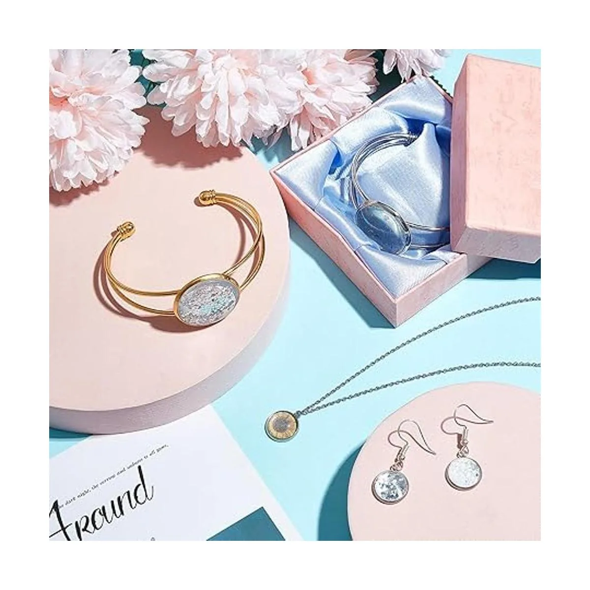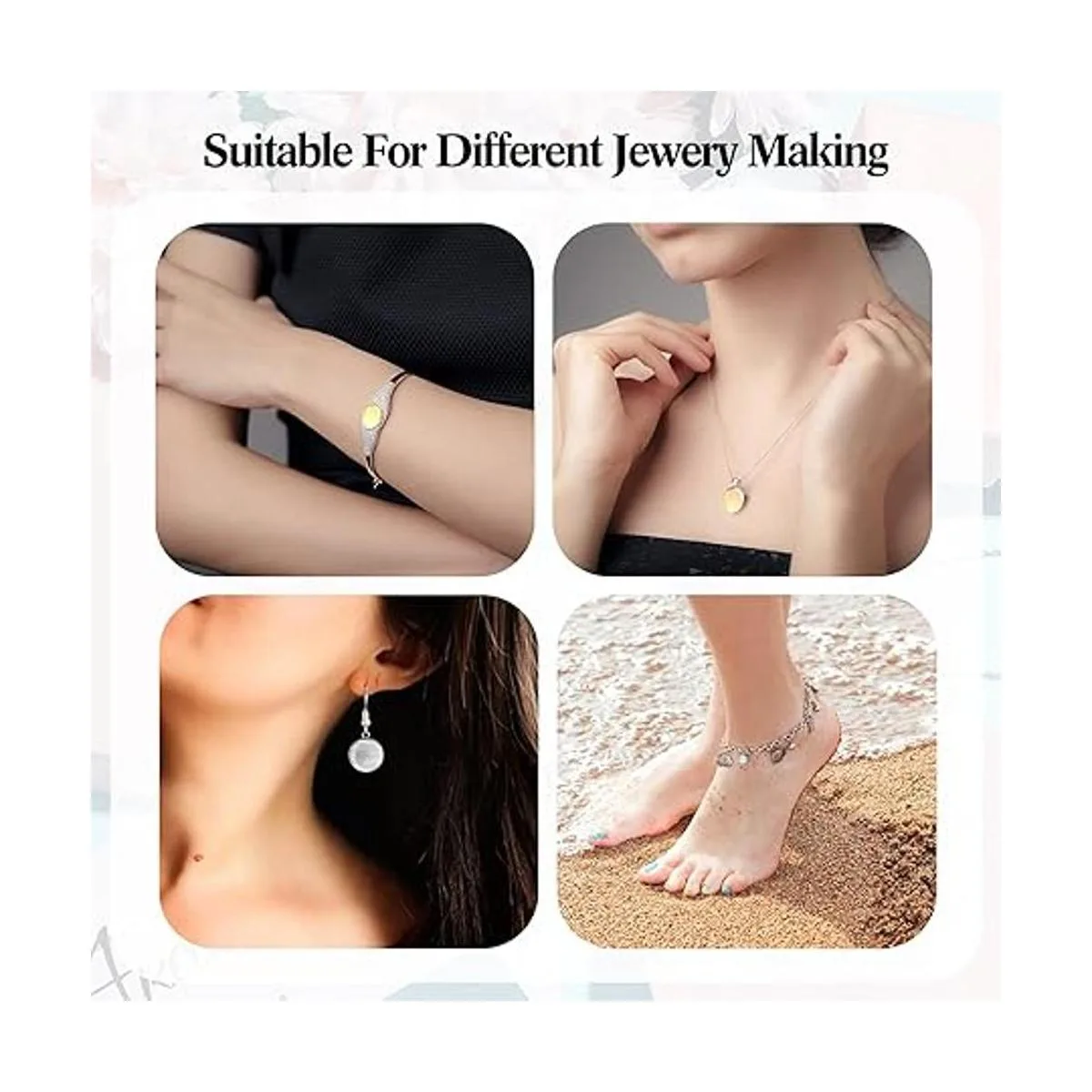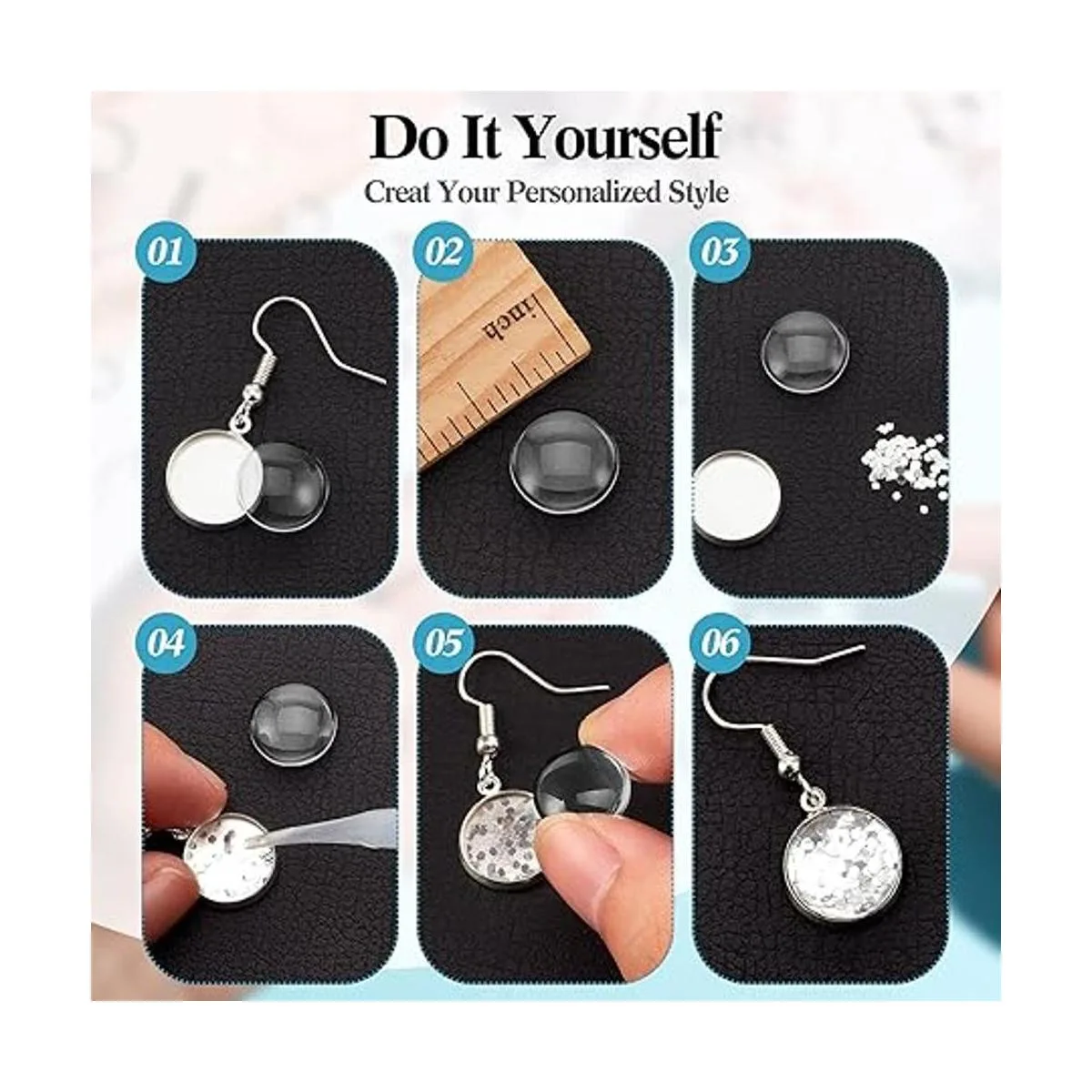 Amplia aplicación: los azulejos de cúpula de cristal tienen una amplia gama de aplicaciones; por ejemplo, son adecuados para hacer diversas artesanías, como collares, aretes, pulseras, anillos o marcapáginas, y también son adecuados para decorar pinturas, álbumes de recortes, paredes, casas, fiestas de cumpleaños, reuniones, manteles, cuadernos, colgantes, bodas, etc