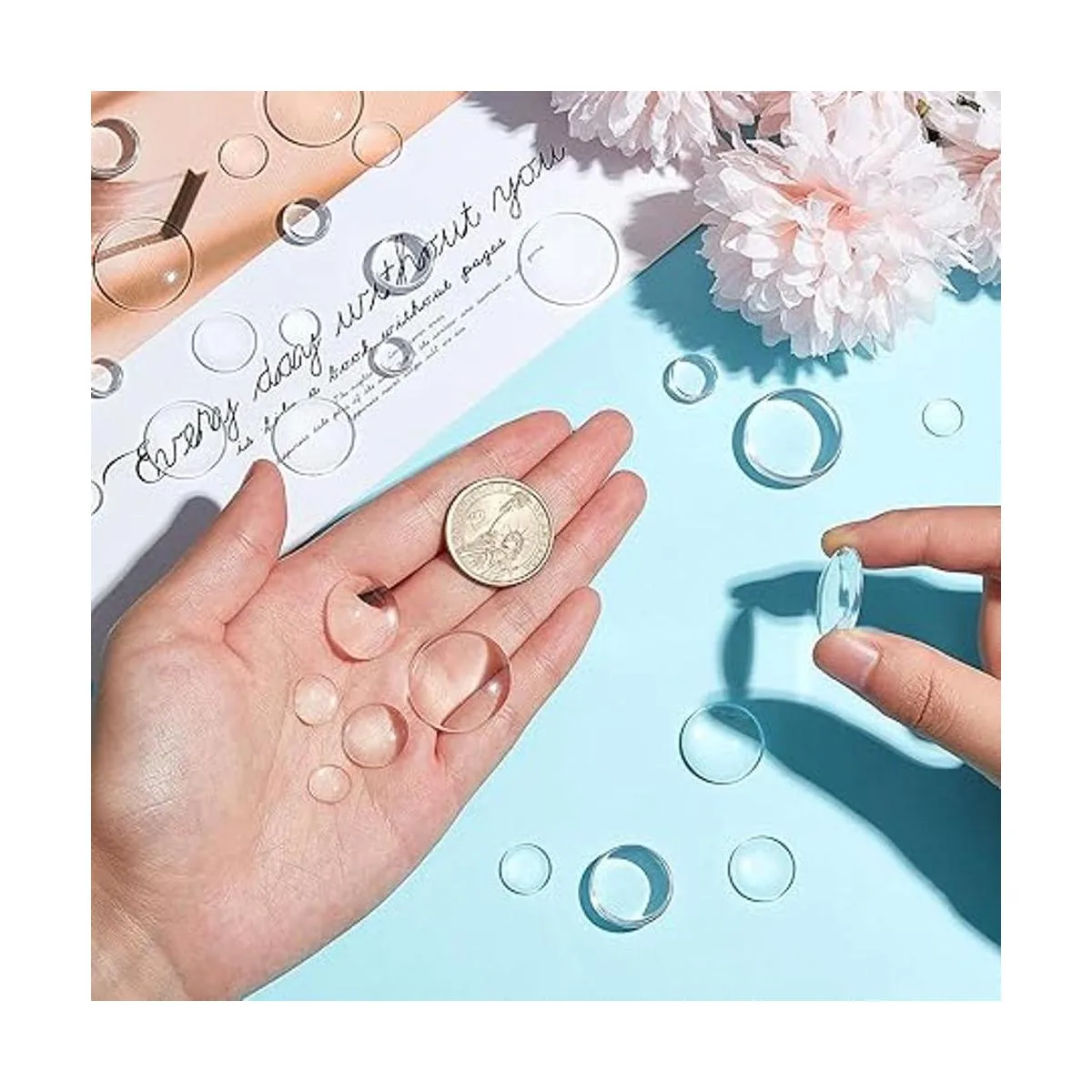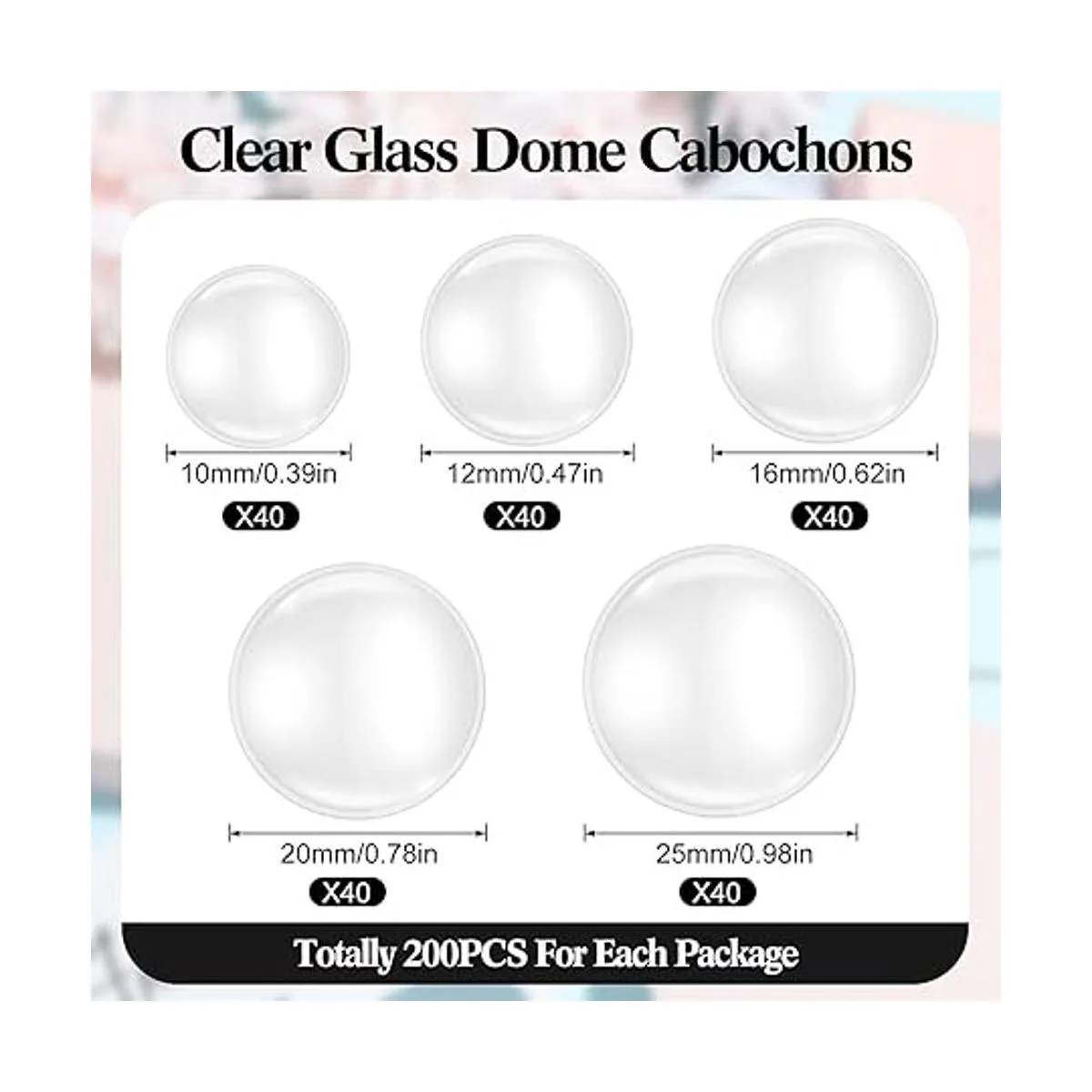 Lo que obtendrás: recibirás 100 piezas de cúpulas de cristal en 5 tamaños, incluyendo aproximadamente 0.39 pulgadas, 0.47 pulgadas, 0.63 pulgadas, 0.79 pulgadas y 0.98 pulgadas de diámetro, y alrededor de 0.14 a 0.28 pulgadas de grosor, 20 piezas cuentan por cada tamaño; hay una cantidad suficiente para satisfacer tus diversas demandas de decoración, y tú se pueden utilizar para hacer muchas manualidades, o puedes compartirlas con tus amigos, buscando mucha diversión de trabajo a mano juntos