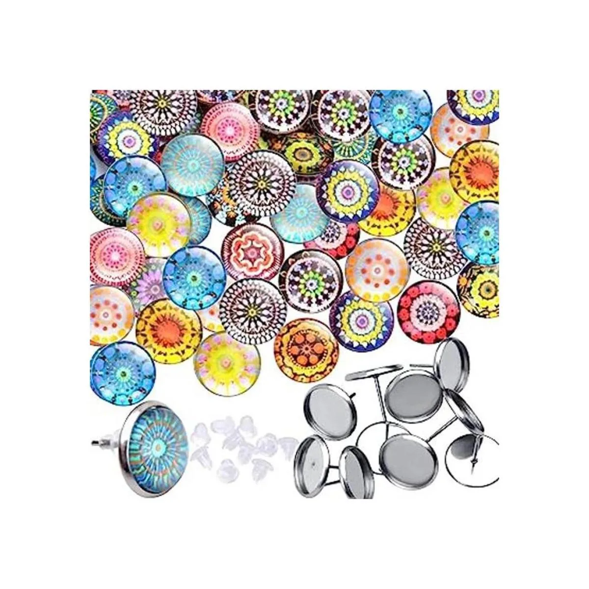 El paquete incluye: 50 cabujones impresos con patrón caleidoscopio con 10 pendientes en blanco y 10 cierres para pendientes, con los que puedes hacer bonitos pendientes.