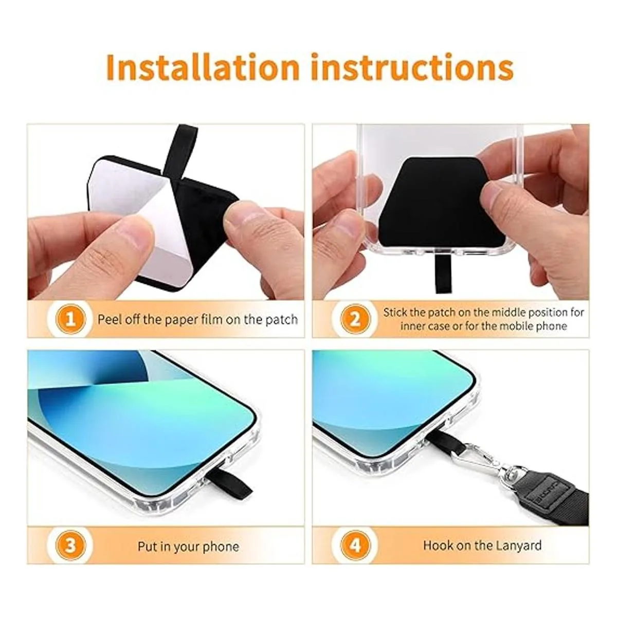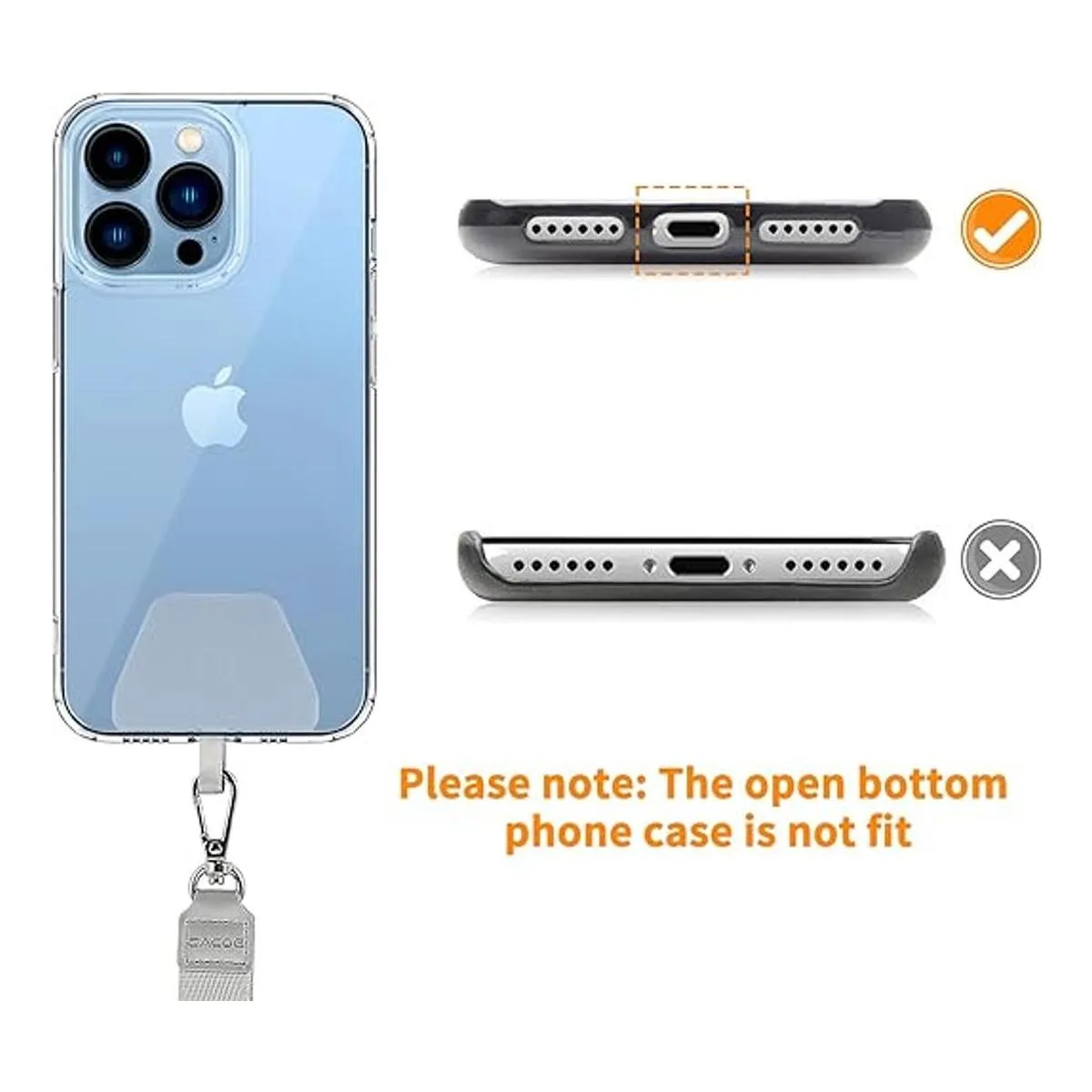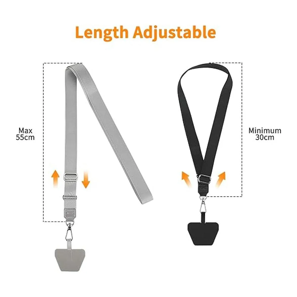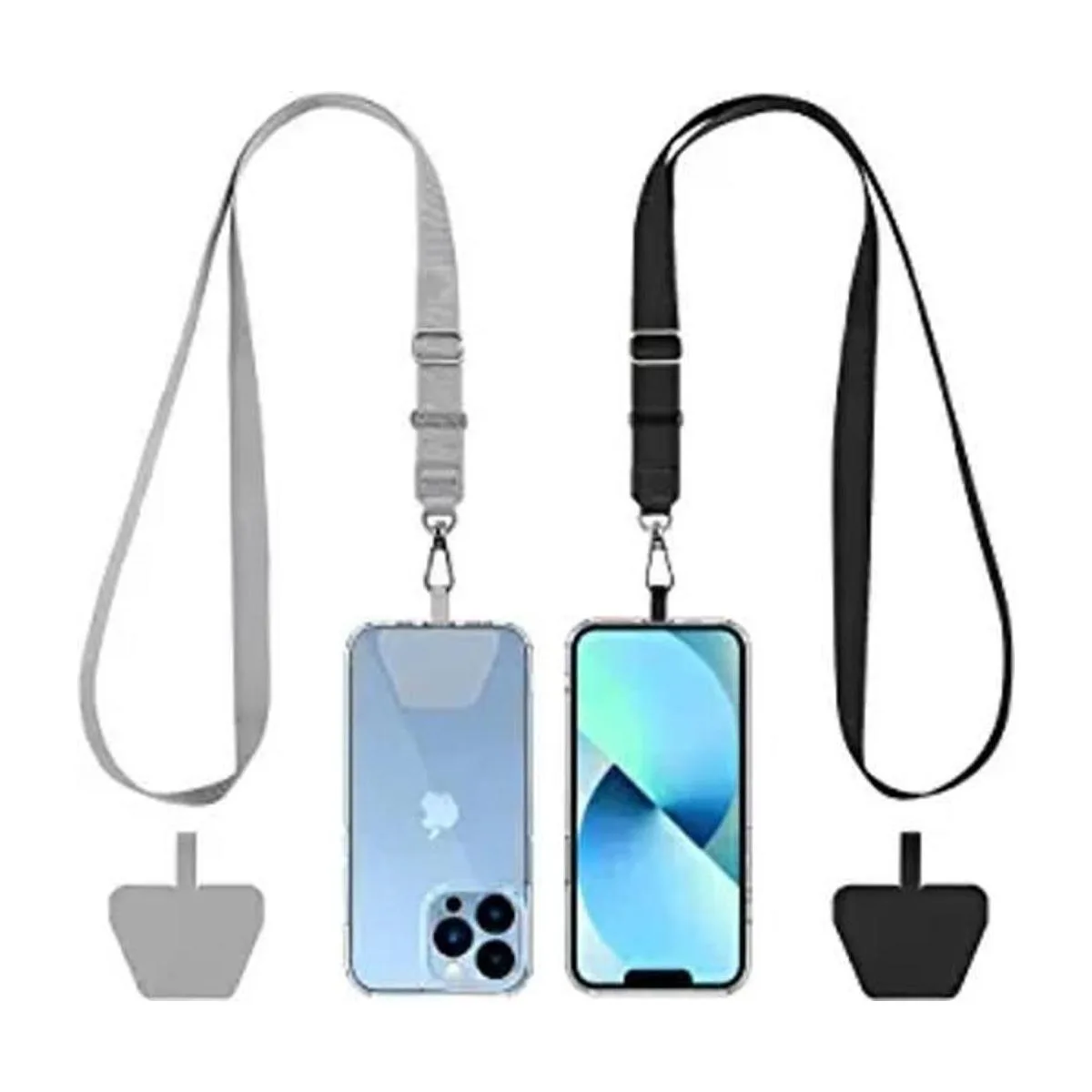 CACOE Cordón universal cruzado para teléfono celular, correa ajustable para el cuello, parche de nailon multifuncional compatible con la mayoría de teléfonos inteligentes gris, negro 2 almohadillas y 2 correas de muñeca