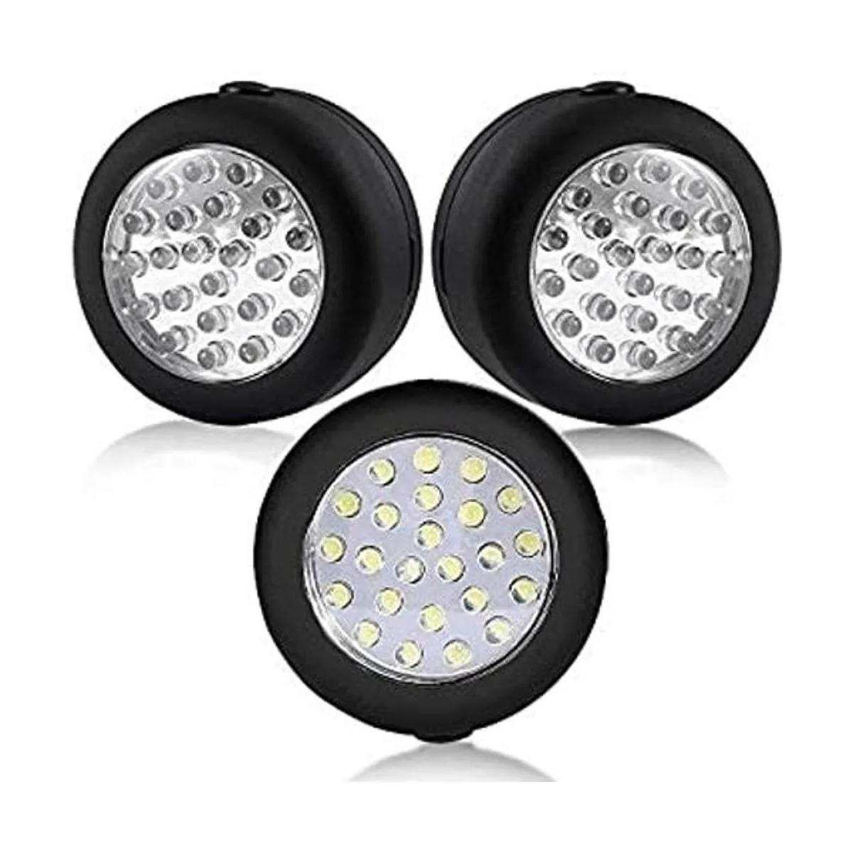 Cade Antorcha magnética redonda de 24 luces LED con gancho colgante integral y juego de imanes, paquete de 3 unidades negro