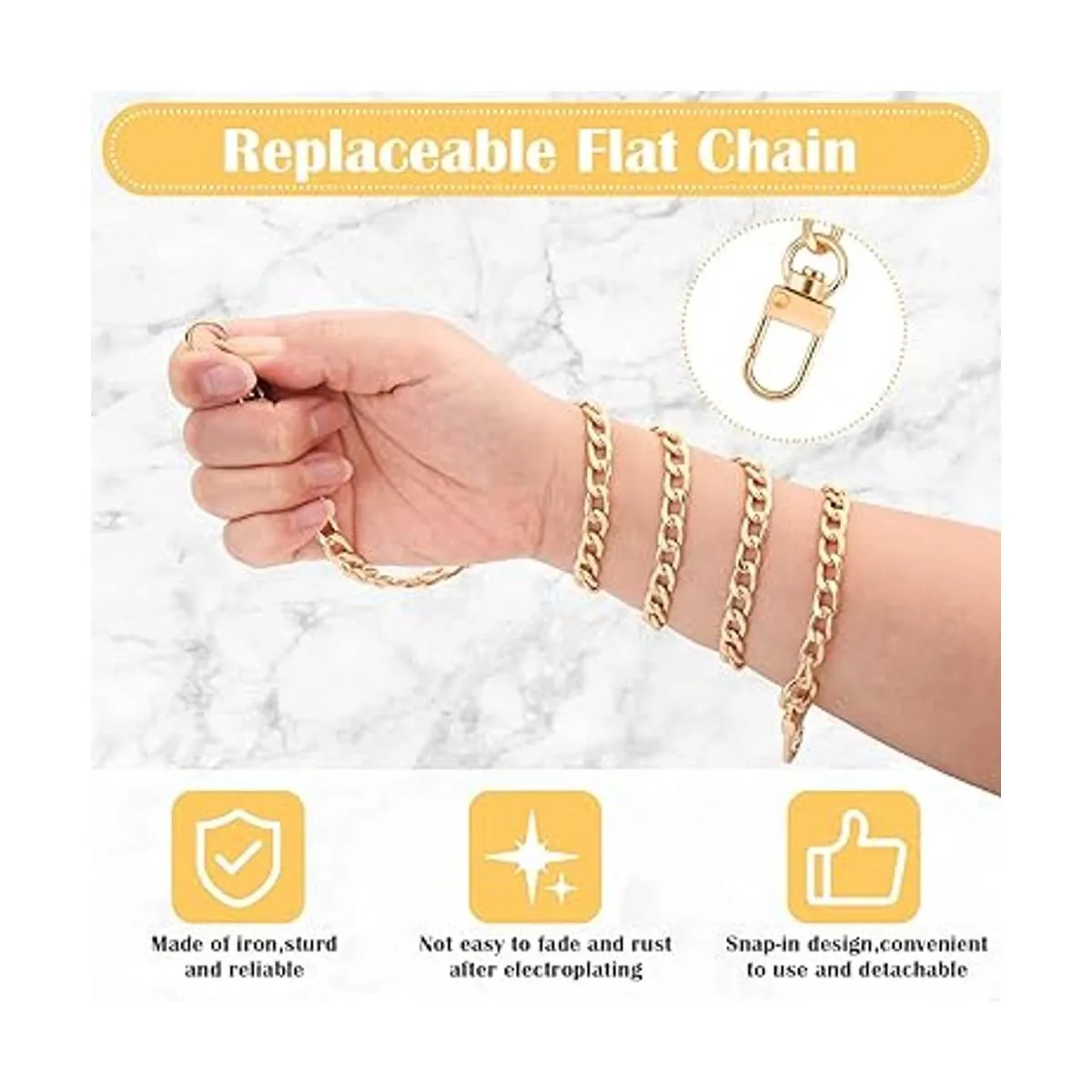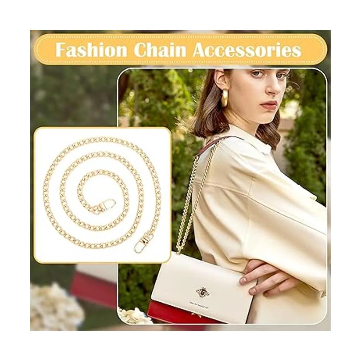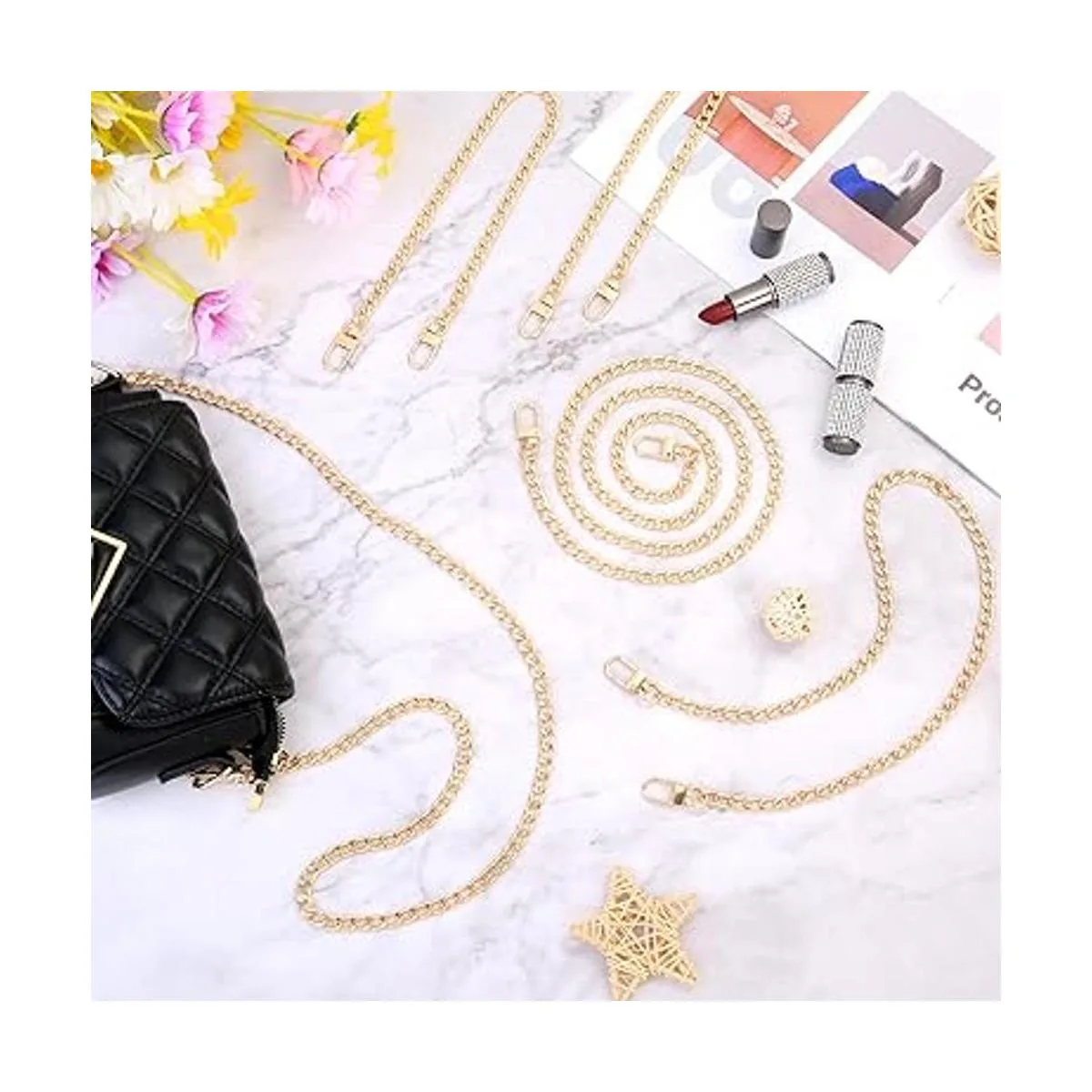 Cadena de 5 tamaños diferentes, cadenas de hierro planas para bolso dorado con hebillas de metal, brillante y fácil de usar, cómoda para bricolaje, bolso de mano, bolso cruzado 15.447.2 pulgadas, dorado