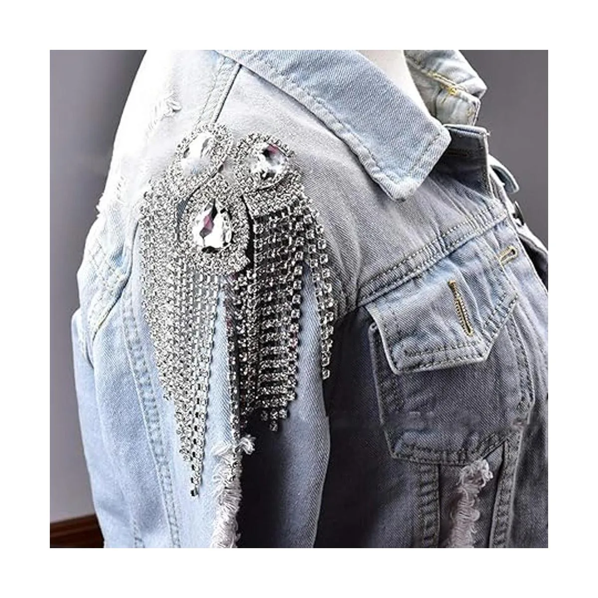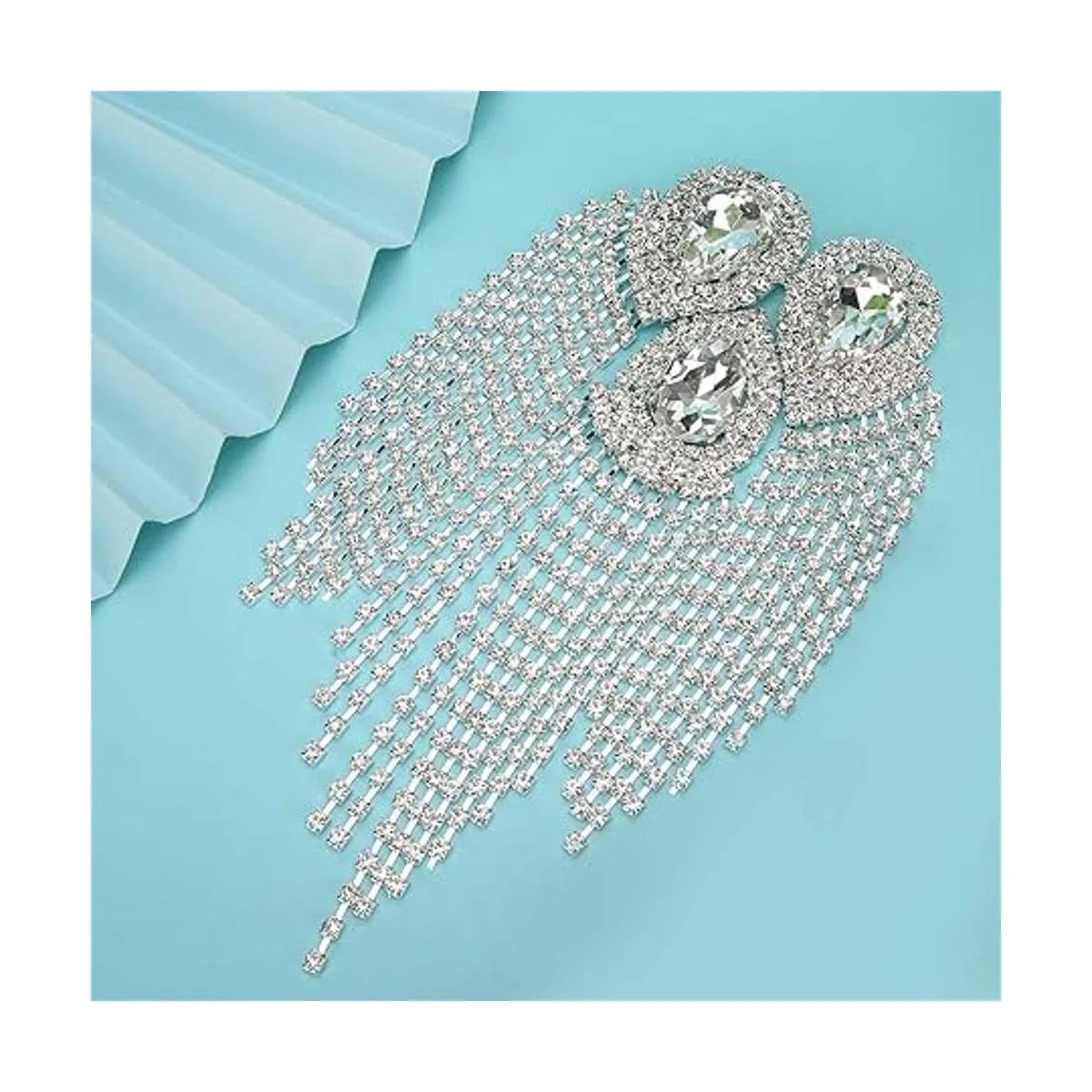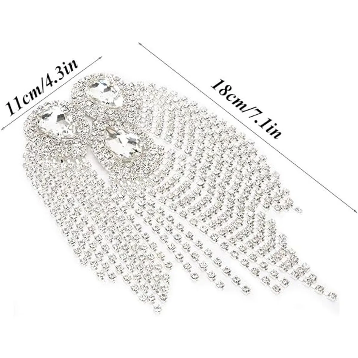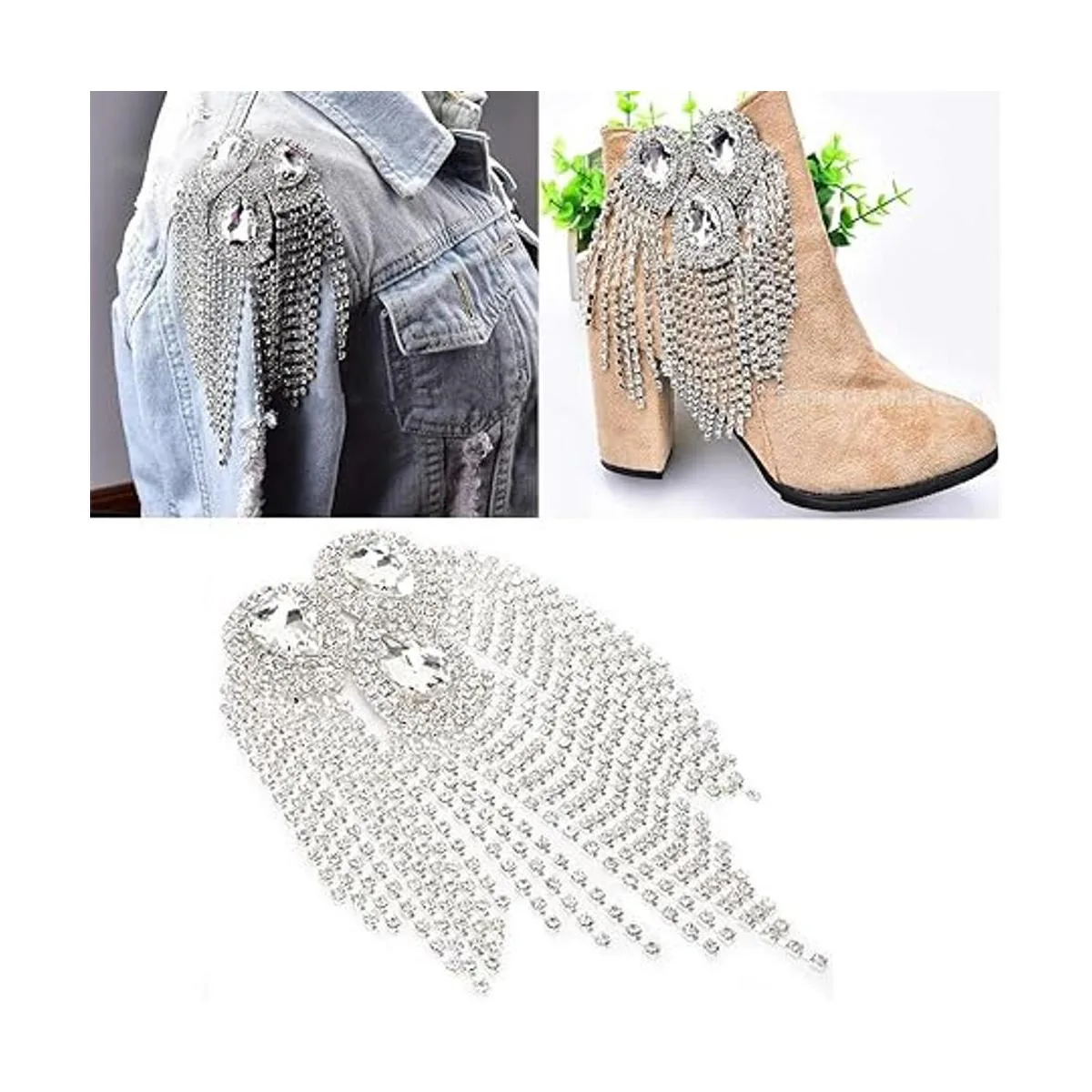 Cadena de diamantes de imitación, apliques de cristal con diamantes de imitación, borla de costura, ropa de bricolaje, vestidos de fiesta, accesorios de 4.3 x 7.1 in