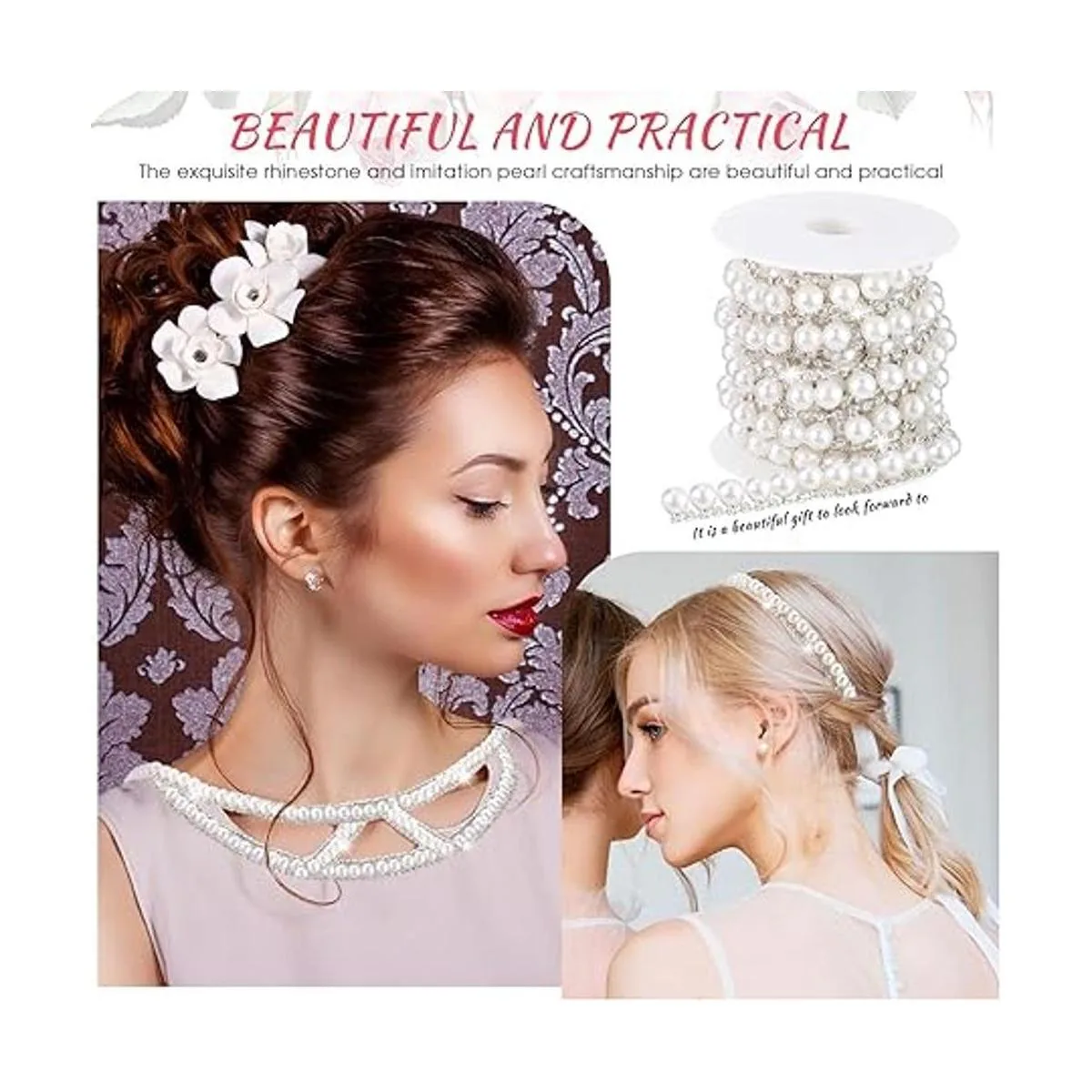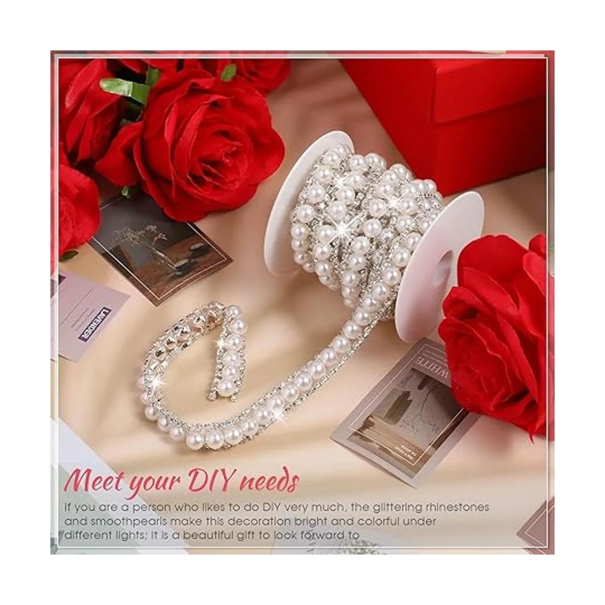 Cadena de diamantes de imitación de 2 yardas con perlas y diamantes de imitación, cadena de perlas para manualidades de diamantes de imitación y adornos de perlas, adornos de perlas de imitación para boda estilo clásico