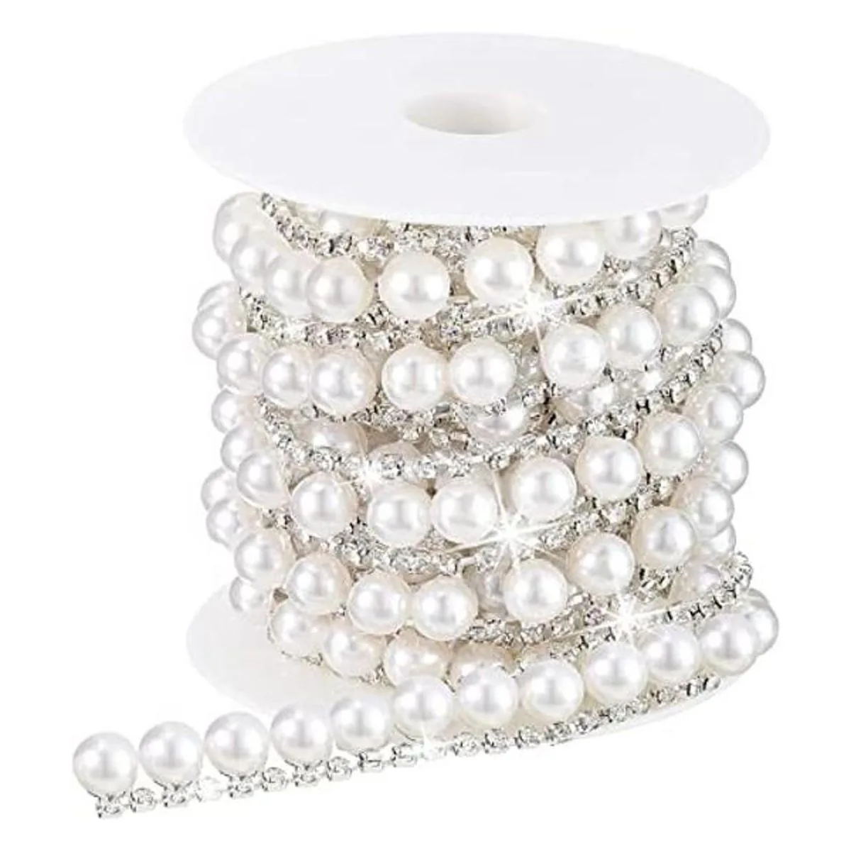 Cadena de diamantes de imitación de 2 yardas con perlas y
