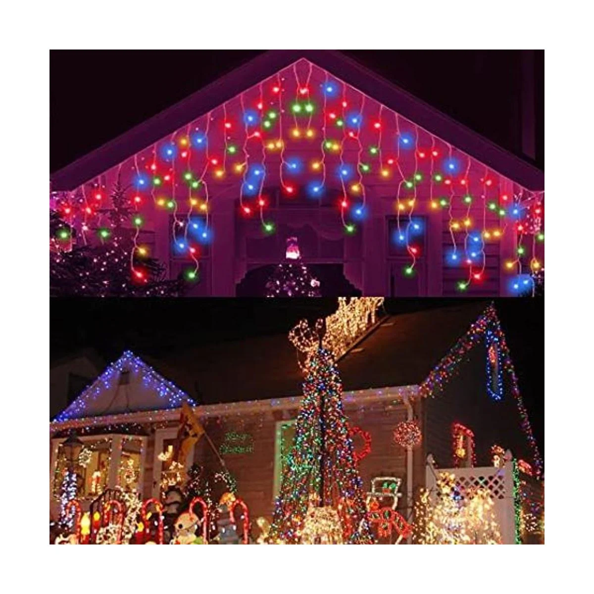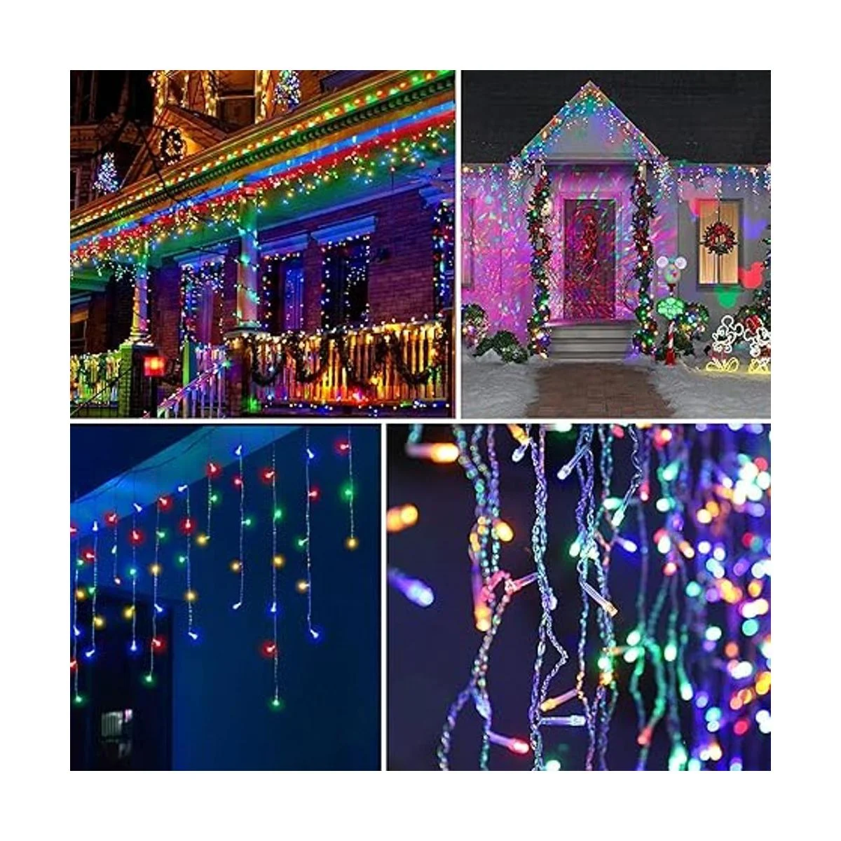 Cadena de luces LED de carámbano de 32.8 pies, 8 modos de luces impermeables de Navidad para exteriores con función de memoria, cortina de luces colgantes para decoración del hogar, fiesta, boda, Navidad multicolor