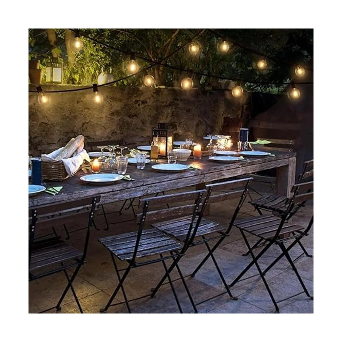 Cadena de luces LED G40 de 25 pies para exteriores, con 25 bombillas inastillables 2 repuestos, cadena de luces LED de grado comercial, impermeables, para porche exterior, bistró, cable negro