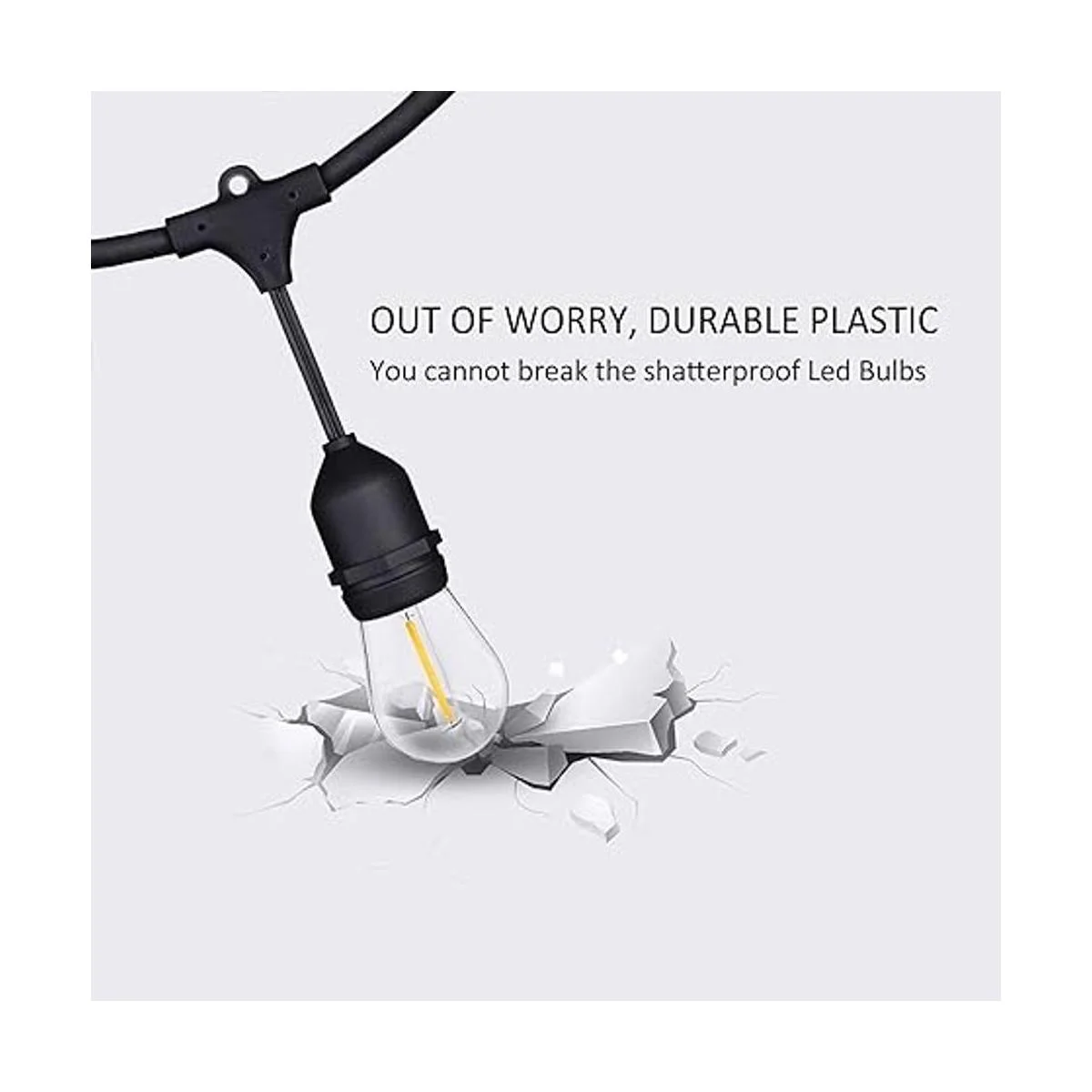 Cadena de luces de plástico inastillable para exteriores: cadena de luces inastillables para café más segura para niños y mascotas con bombillas de plástico irrompibles mientras recepciones de boda, fiestas, pequeñas charlas, barbacoa o cena con familias. Puedes conectar fácilmente luces de cadena para exteriores de hasta 10 hebras con un enchufe impermeable de extremo a extremo