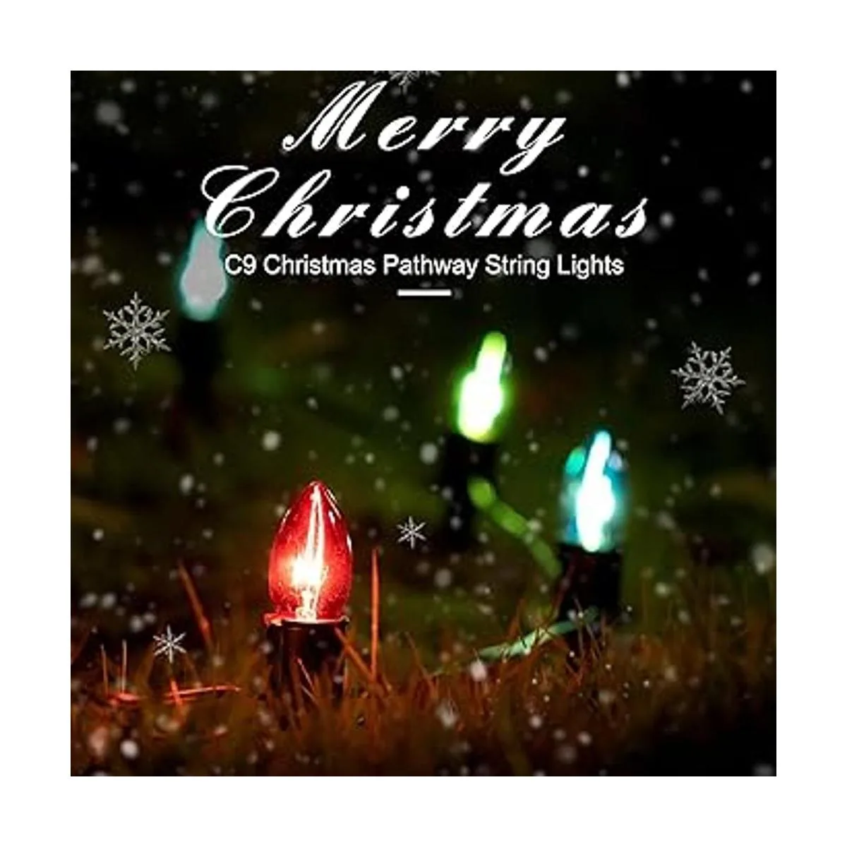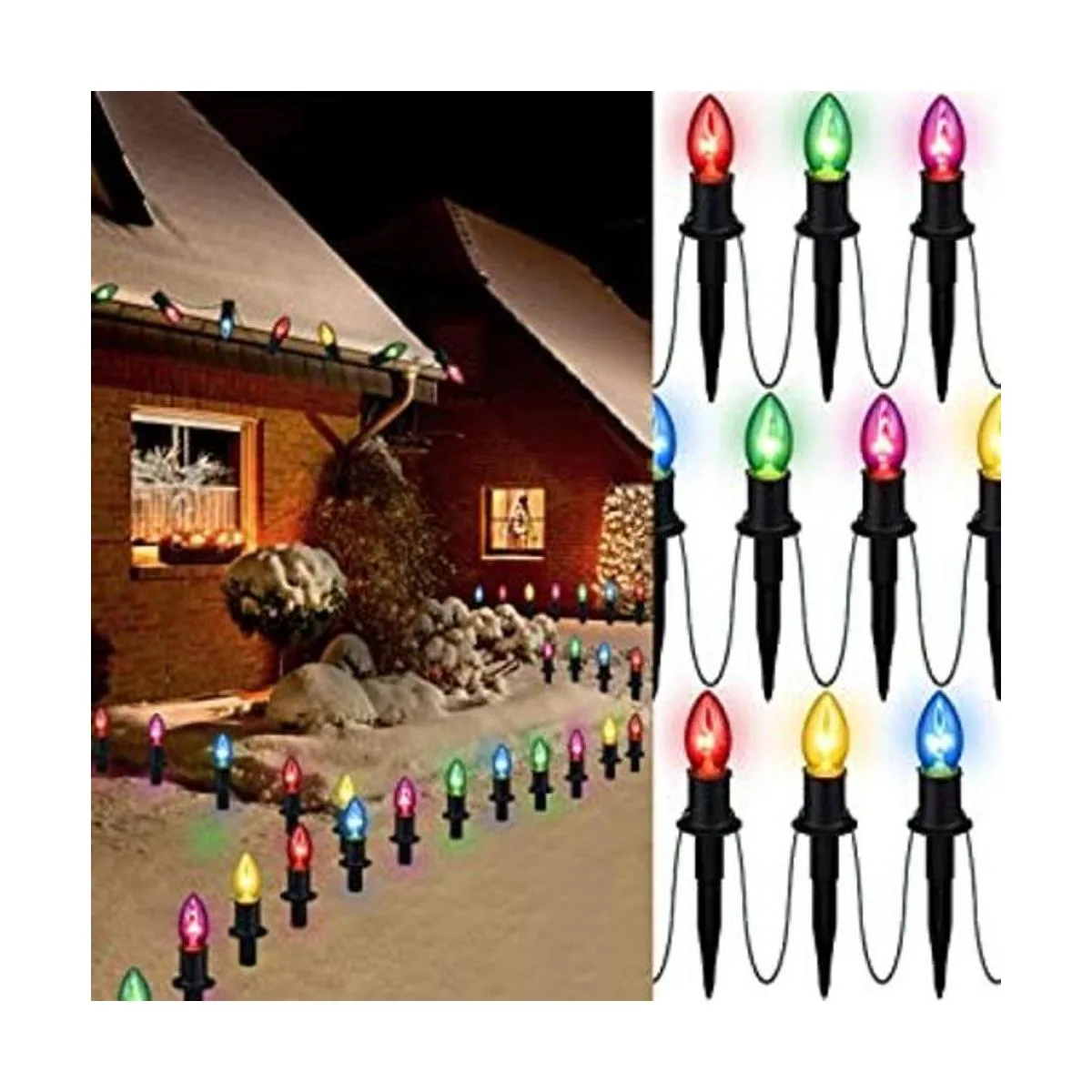 Cadena de luces para caminos de Navidad para exteriores, 24.2 pies, cadena de luces multicolor con estacas, luces de acera C9 para patio exterior, jardín, extensible para decoraciones navideñas de Navidad, 20 luces