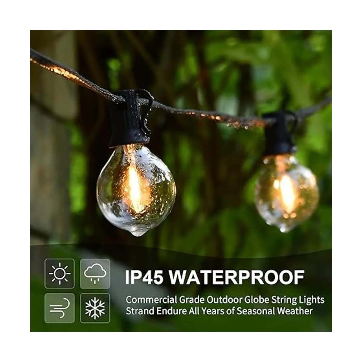 Cadena de luces para exteriores de 100 pies para exteriores, impermeable, para patio, patio, resistente, certificación ETL, inastillable, plástico G40 Edison bombillas transparentes de 0.6 W, eficiencia conectable globo, luces exteriores