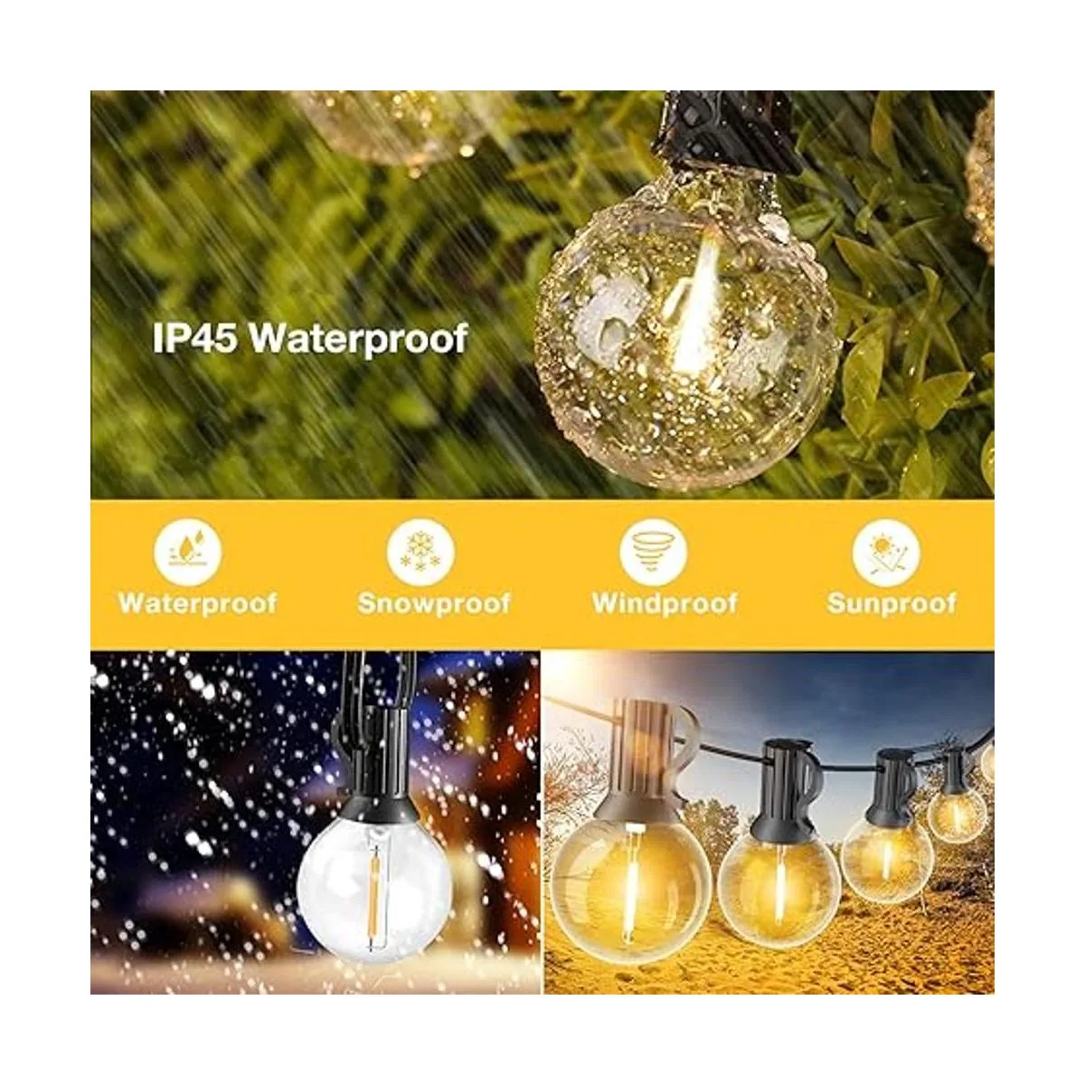 Cadena de luces para exteriores de 60 pies, 30 bombillas de globo inastillables de 2700 K, luces LED para exteriores, impermeables, conectables para patio al aire libre, tira de luces colgantes regulables para patio trasero, bistró
