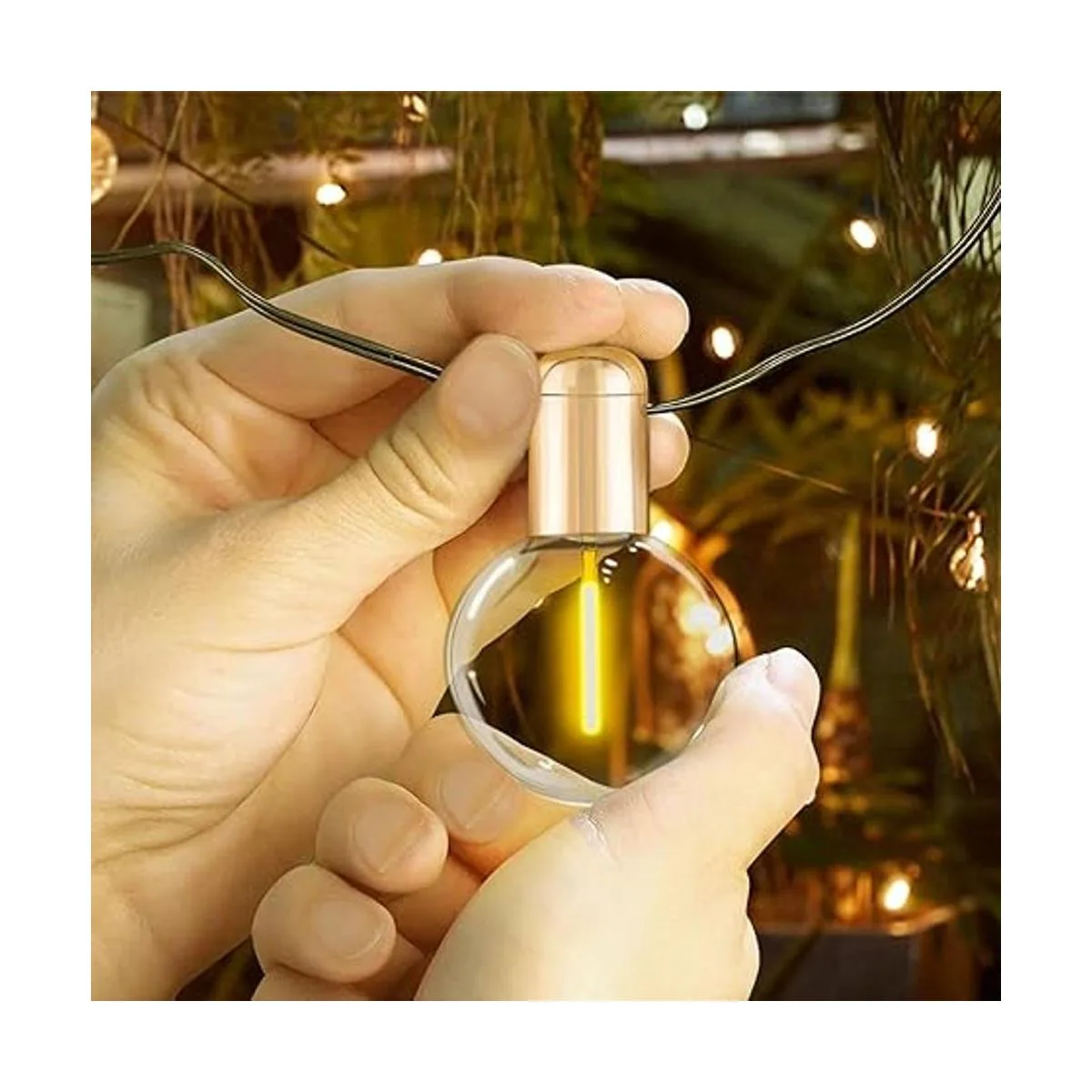 Soporte para lámpara vintage: el soporte para lámpara dorado champán y la iluminación suave irradian un ambiente lujoso y romántico. Esta cadena de luces para interiores es adecuada para bodas románticas, reuniones familiares acogedoras y fiestas, fiestas de cumpleaños y varias fiestas de vacaciones.