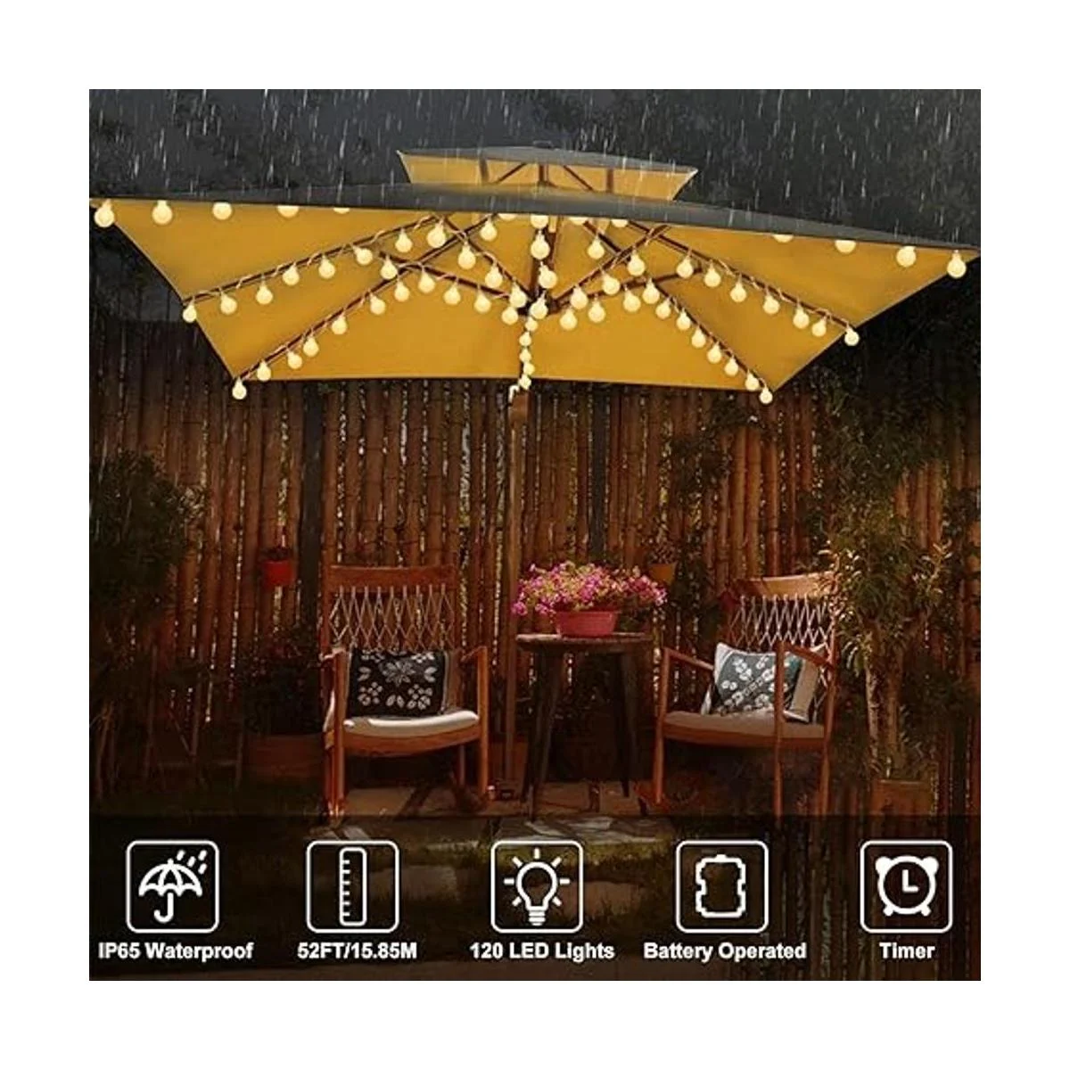 Fácil instalación: nuestras luces de cadena para exteriores son ligeras en peso, cuerdas firmes, luces de alambre flexibles, evitan enredos y son fáciles de instalar con bridas de cables, abrazaderas, ganchos de taza o accesorios. Las luces que funcionan con pilas son muy adecuadas para dormitorio, jardín, toldo, boda, camping, hotel. También es muy adecuado como regalo para familiares y amigos.
