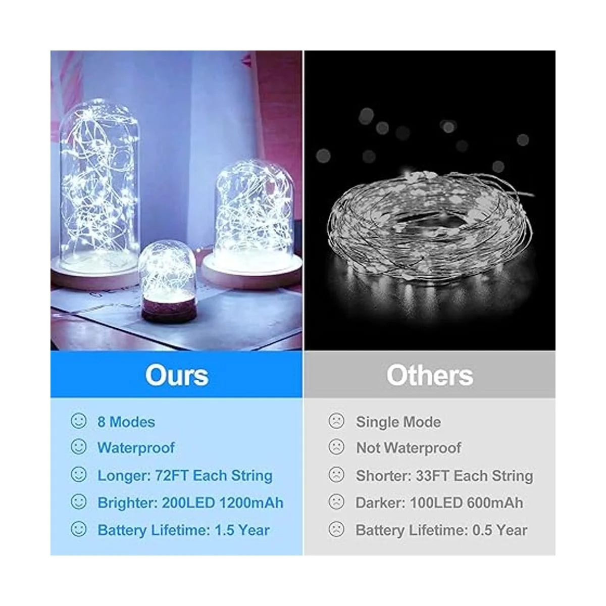 Tira extralarga y 8 modos de luz Cada tira mide 72 pies de largo e incluye 200 pequeñas luces LED. Hay 8 modos de luz en total ondas, combinado, desvanecimiento, luciérnagas, persecución, centelleo, encendido fijo y desvanecimiento lento disponibles para que puedas crear un efecto de iluminación como quieras