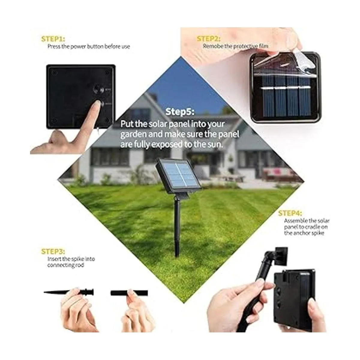 Funciona con energía solar y encendido/apagado automático: suministro de energía solar, sin costo eléctrico adicional y sin necesidad de reemplazar la batería. Haz que el sensor de luz del panel solar controle la carga de las luces solares durante el día y se encienda automáticamente en la oscuridad.